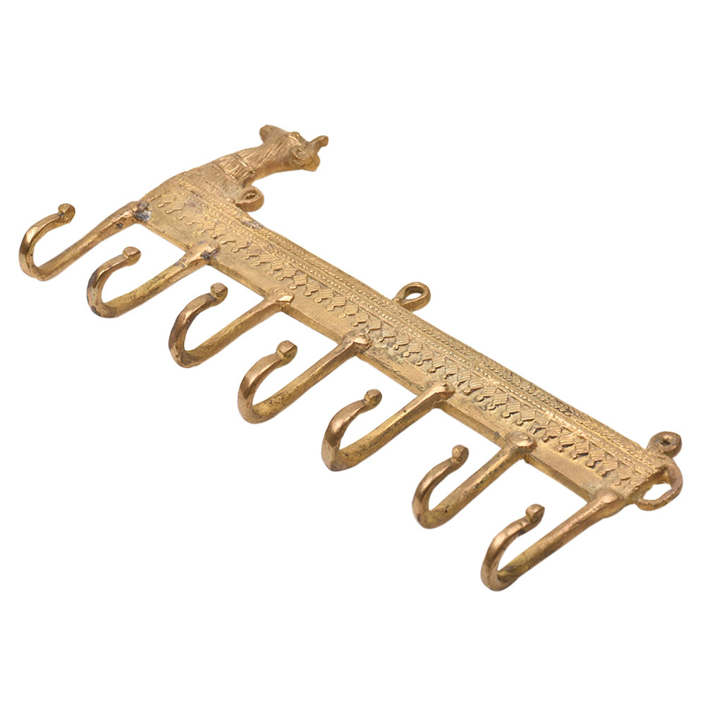 Brass Tribal Animal Face 7 Hooks Brass Coat Rack