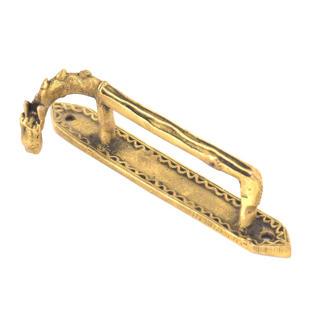Handmade tribal art horse handle is made of brass by the skilled craftsmen of India. This handle has long back of the horse and has hairs on it. This horse handle can be used for almirah, doors, wardrobe, dresser, cabinets, drawers, etc.