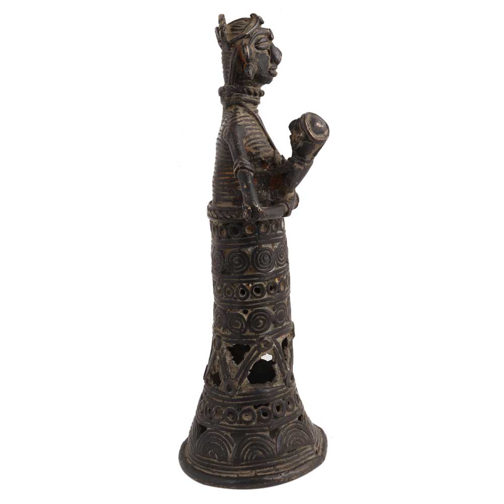 Brass Tribal lady Holding Child is holding a Child in her hand made by the local artisans of India . This statue is used as a display item for the living room or as a gift for friends and relatives who are fond of handmade trial statues.