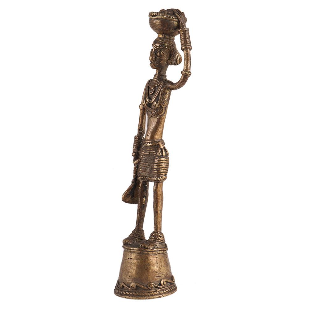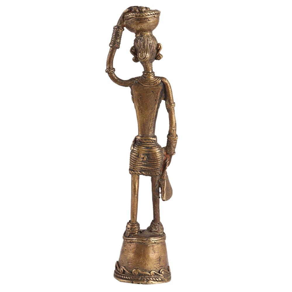 • Brass Tribal lady With Basket Figurine