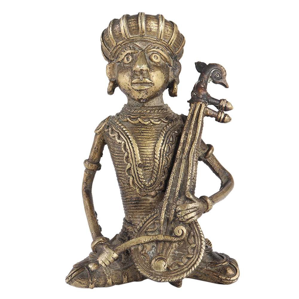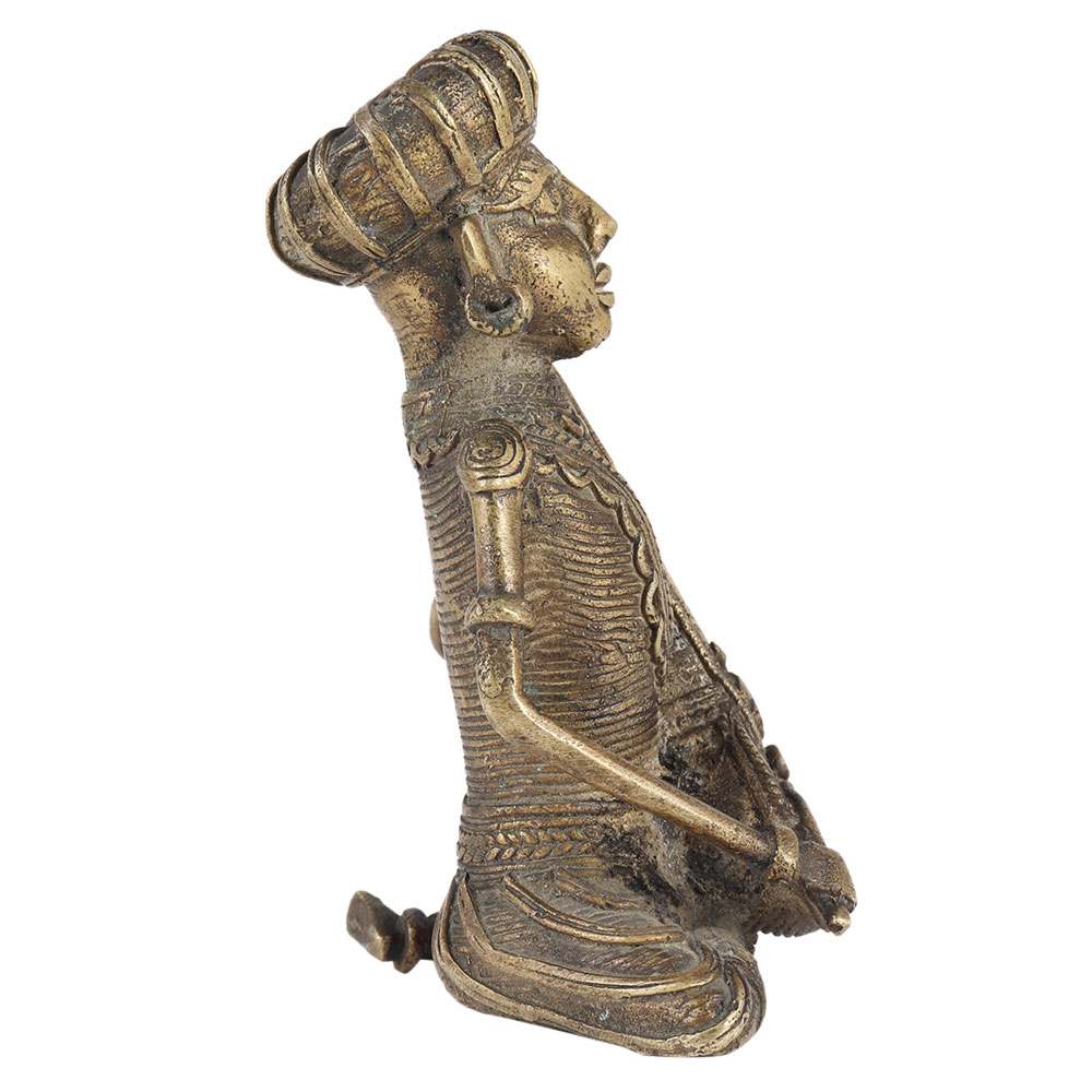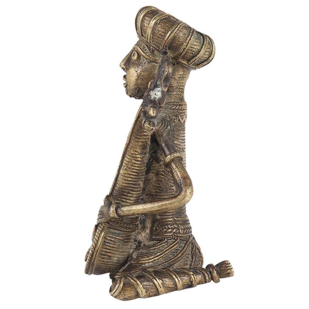 This tribal man: madia artifact will add value to the décor of your home or office. The Dokra metal casting system is said to be the original form of metal casting, and it is technically known as the 'cire perdue' or lost wax process. The traditional hollow casting method focuses around the replacement of wax with molten metal. Dhokra casting is currently practiced in tribal areas of India, primarily in Chhattisgarh and Orissa.