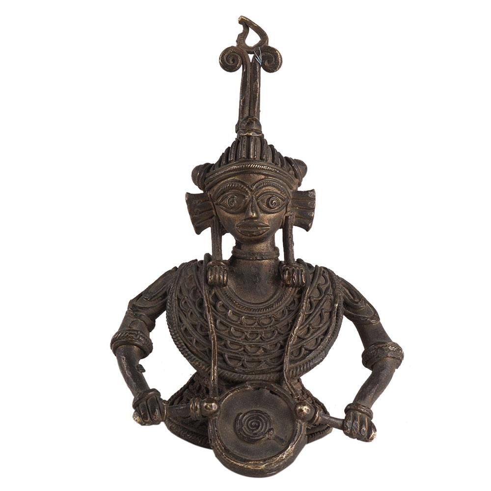• Brass Tribal Musician Figurine With Dholak
