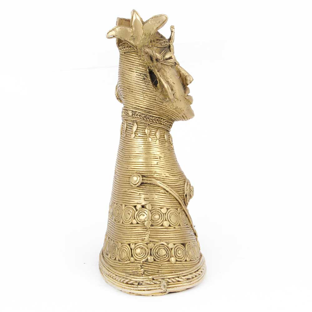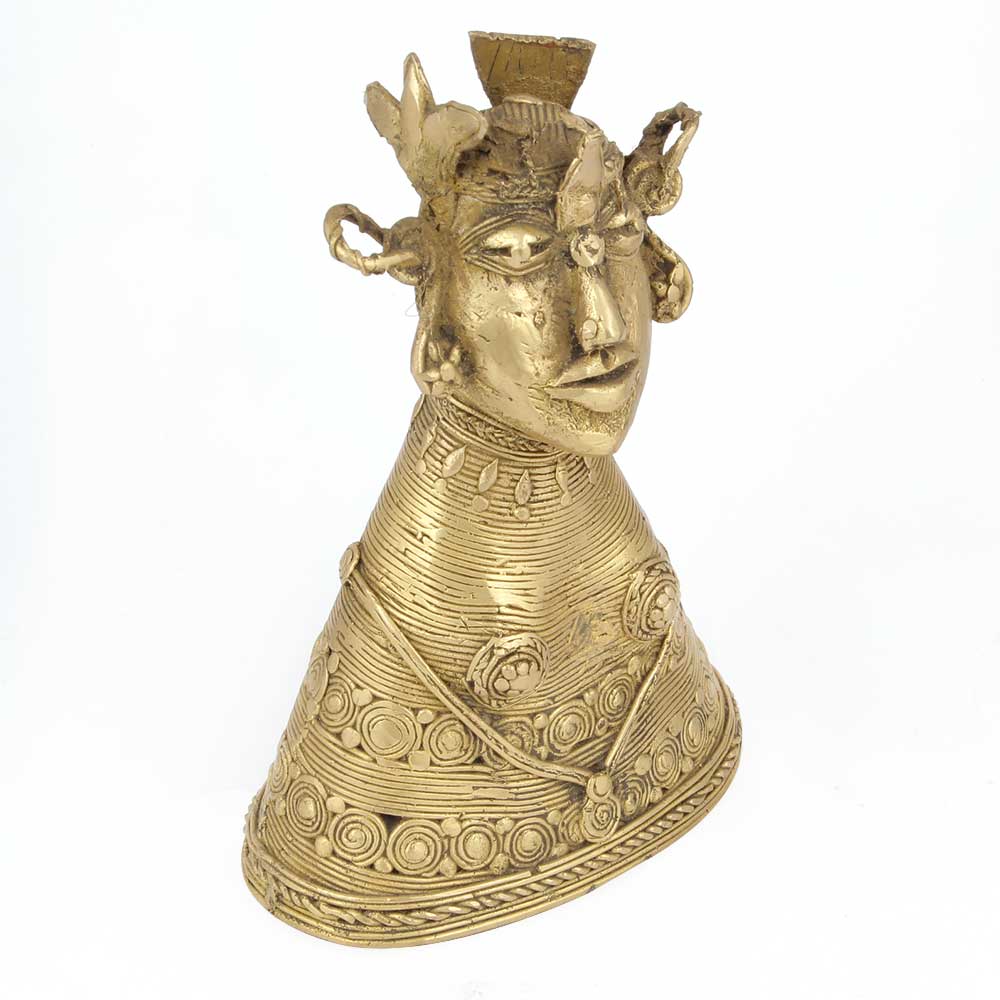 • Brass Tribal Women Bust Statue with Stud Earrings