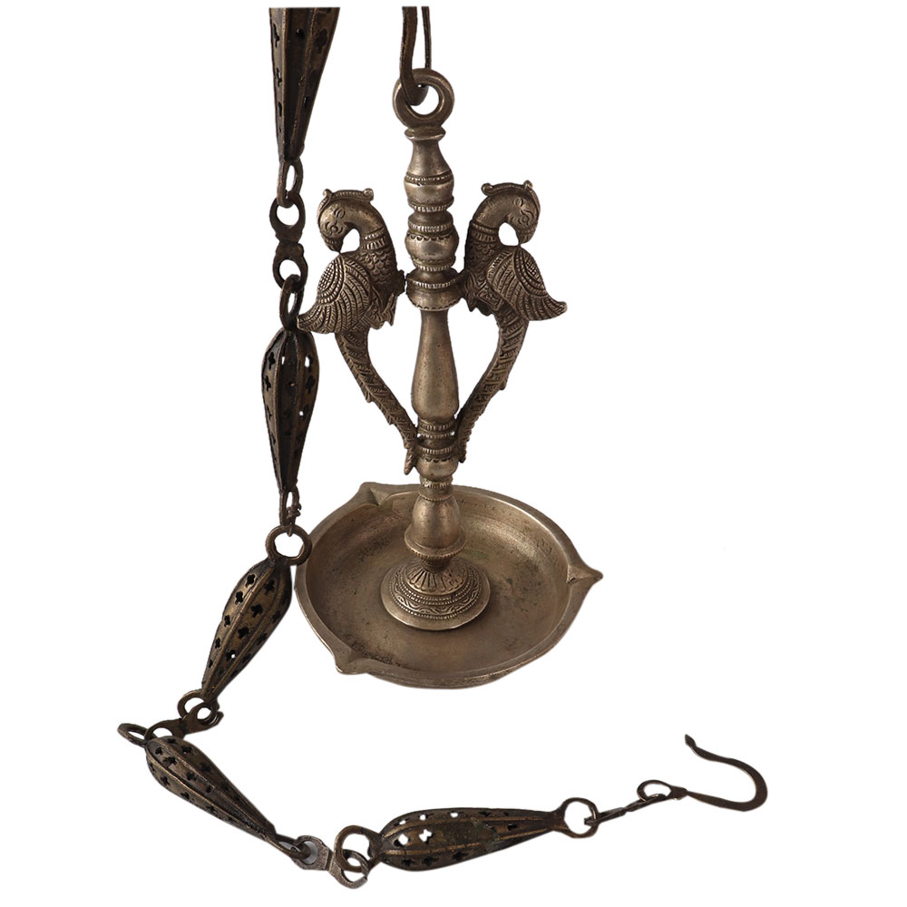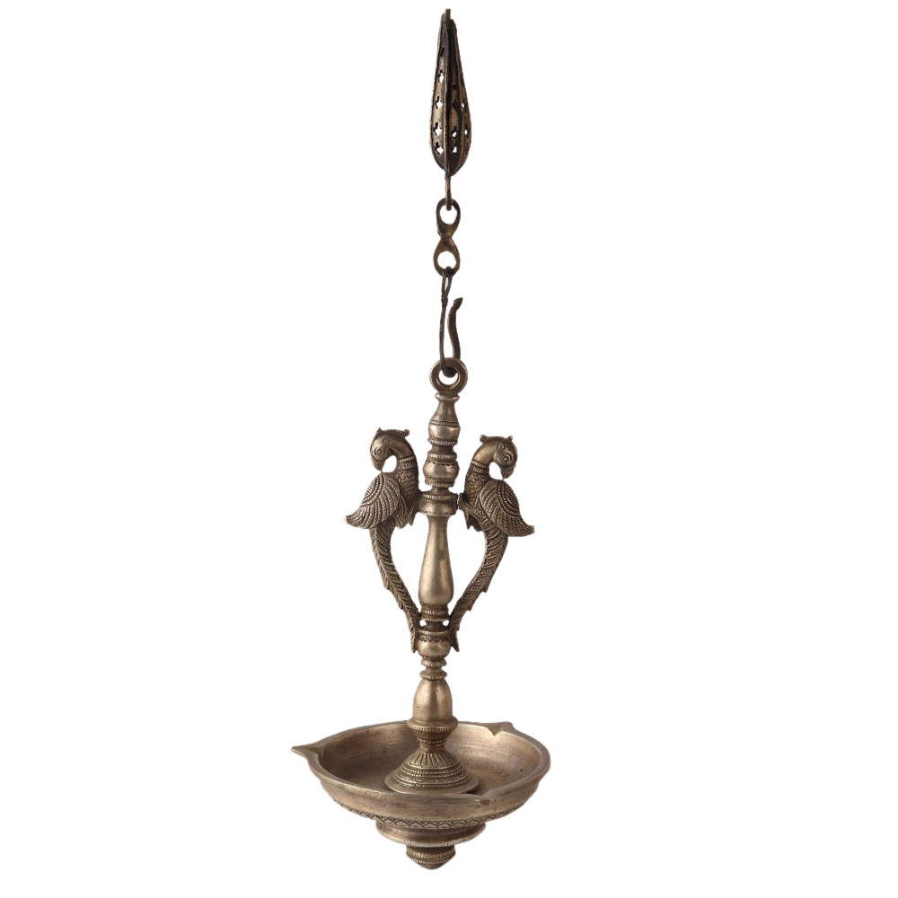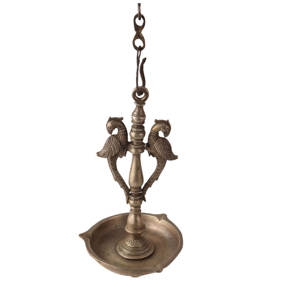 Brass Twin Parrorts Hanging Diya Oil Lamp