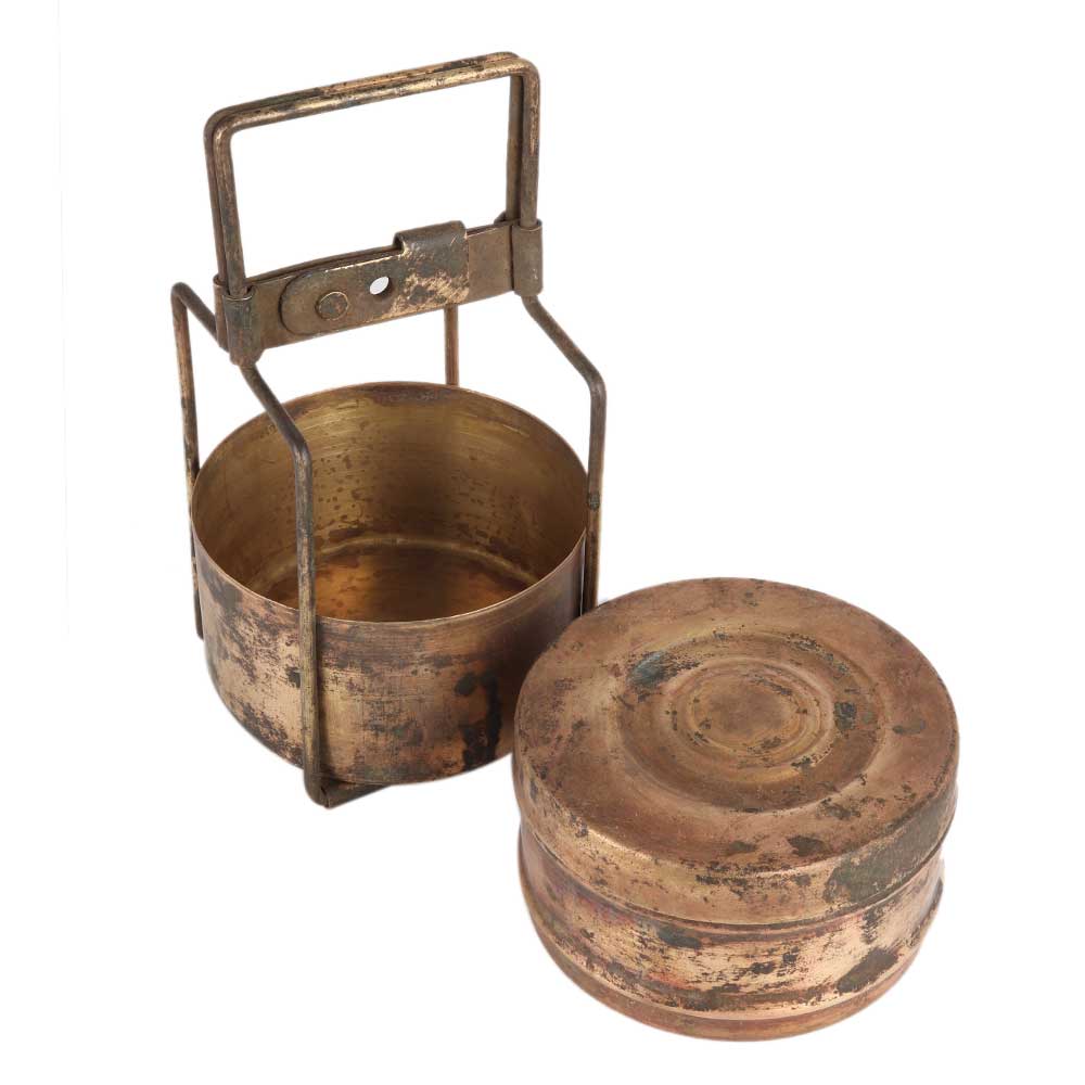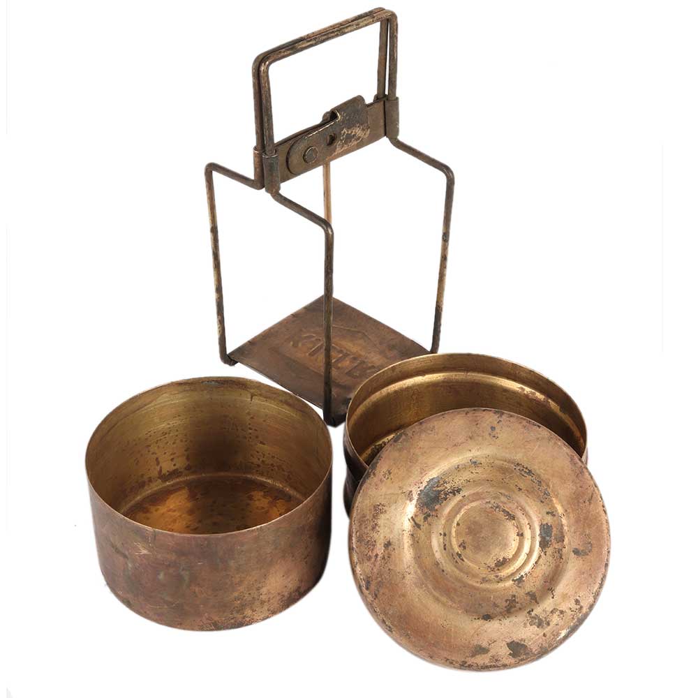 Tiffin box, also known as Dabba, is a traditional Indian kind of lunch box that was used for transporting small snacks and meals, notably lunches. You can use this indian Tiffin box for jewellery storage and food presentation. It can also serve as table decoration. This brass Tiffin box is old and used it has some little marks and dents from original use, which adds to its charm.