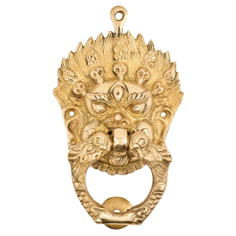 Brass Vajra Mahakala Buddha Head Birds Ring Door Knocker