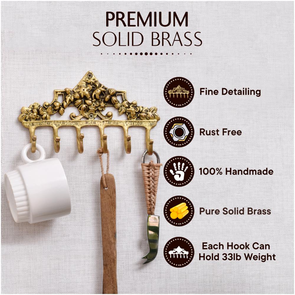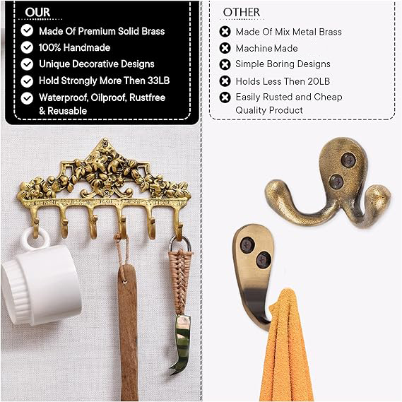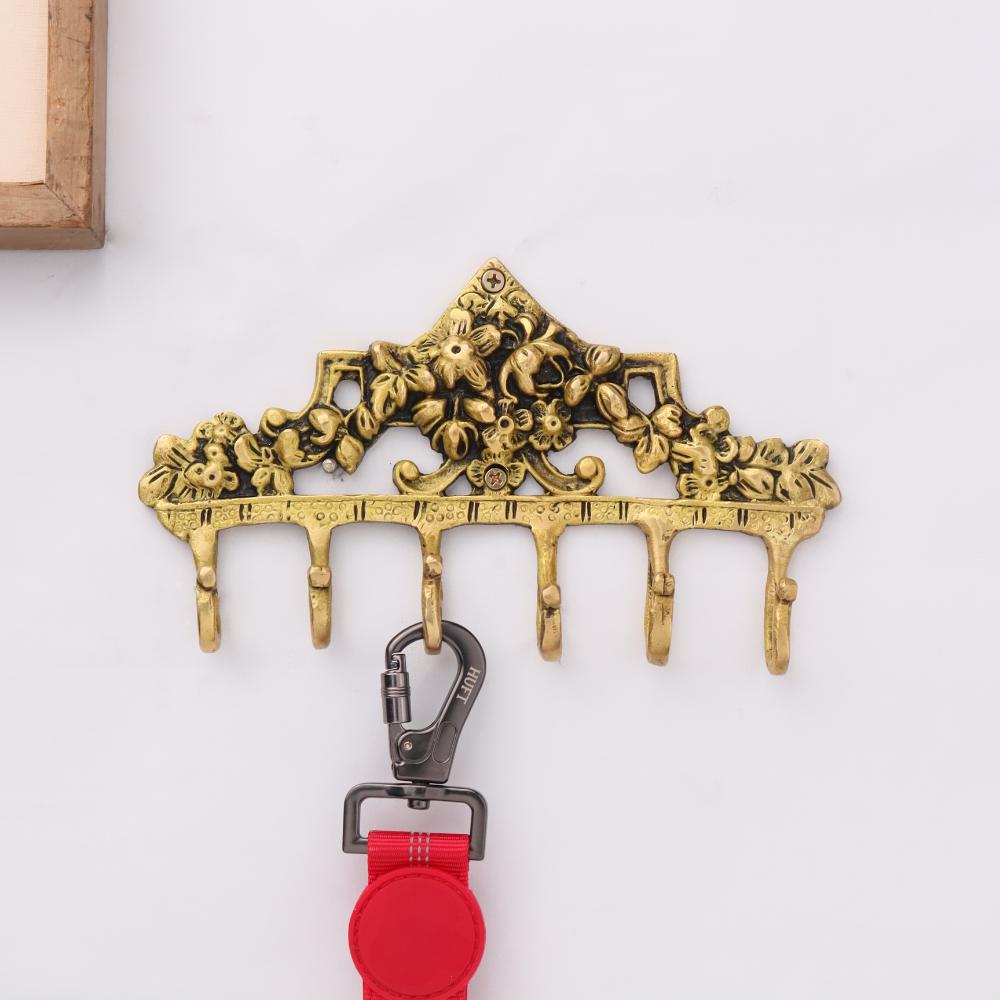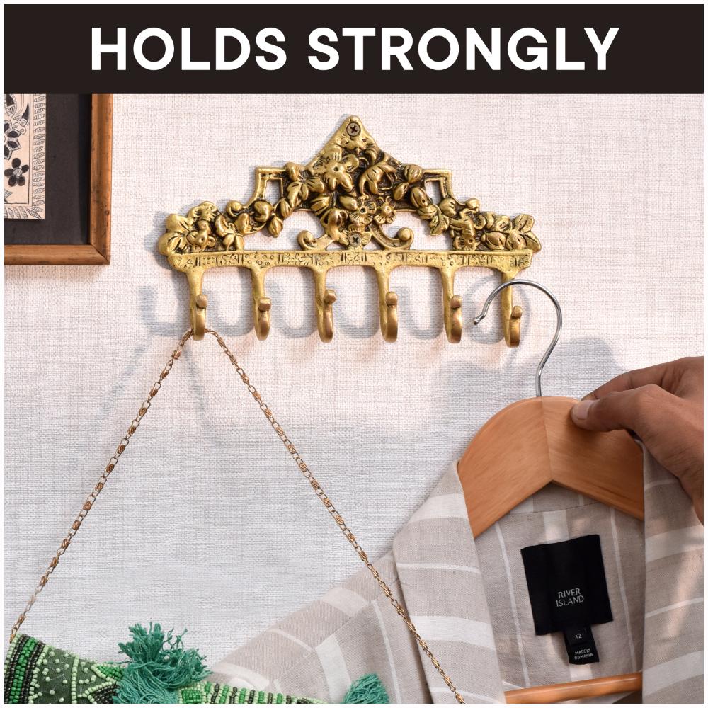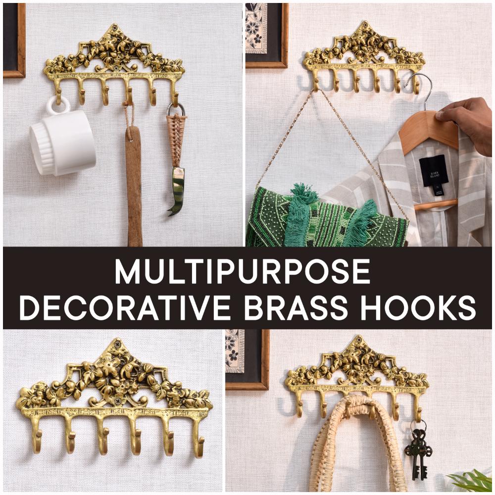 Indianshelf.com for bulk/wholesale orders.Indianshelf.us for personal purchases.The Brass Victorian Small Floral Arrangement Six Wall Hook is a delightful and practical decor item that adds a touch of vintage charm to your home. Made from high-quality brass, this wall hook showcases intricate floral designs and a classic Victorian style that enhances any room with its timeless beauty. Whether placed in the entryway, hallway, bathroom, or bedroom, this wall hook combines elegance with functionality.