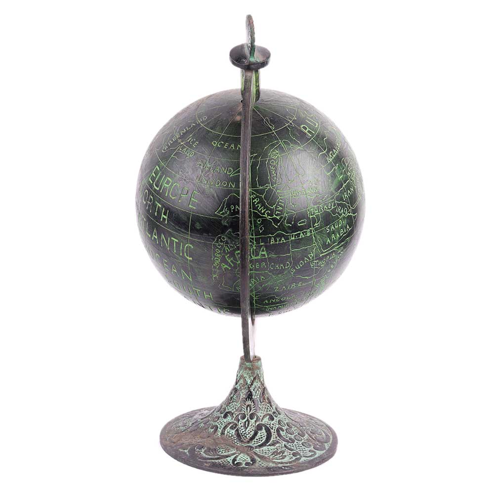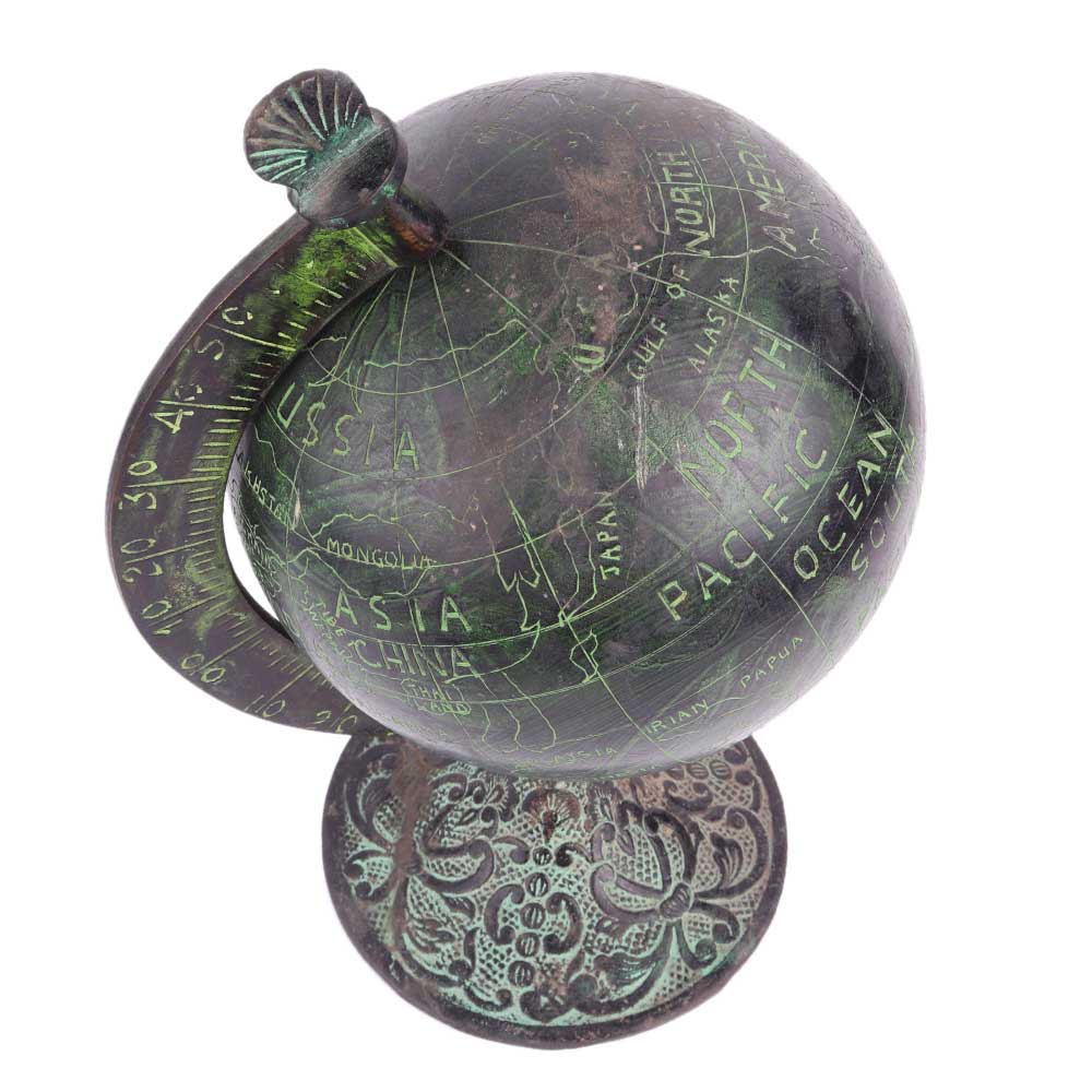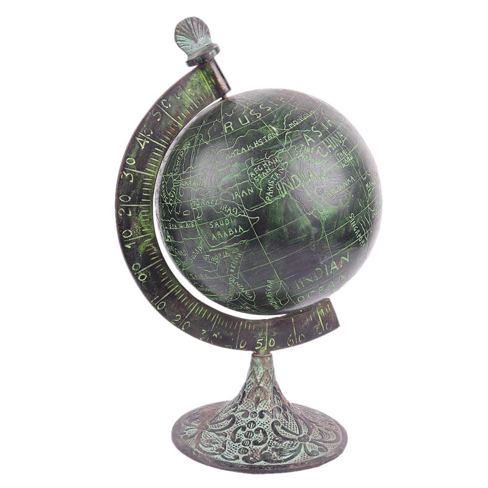 Brass Handcrafted world globe on a stand that lends a vintage look to any office desk or your study table. The perfect addition to kids room for endless journeys of fun and learning. Diwali gift, birthday gift, school decoration.