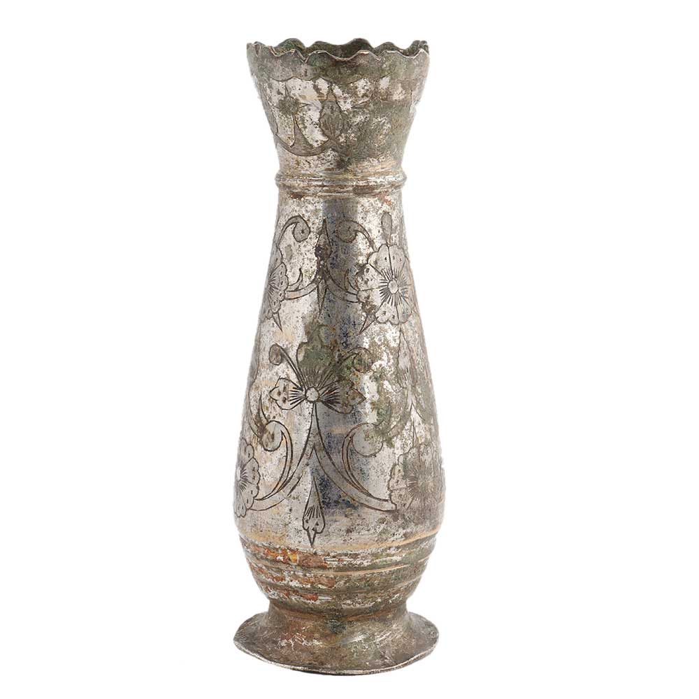 The vintage used flower pot with carving work is a decorative addition for both modern and traditional homes. The tastefully crafted metal flower vase is an eternal addition to the home. The stylish patterns in the vintage used flower pot with carving work are crafted by master craftsmen of the nation. The vase is in excellent condition and a true piece of art that can double as a corporate gift.