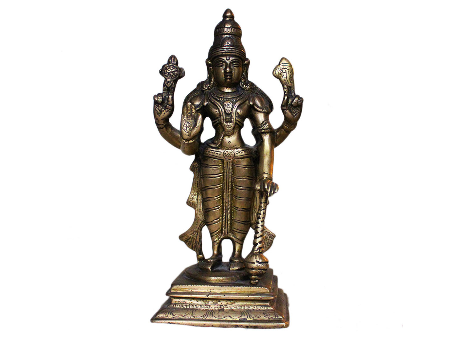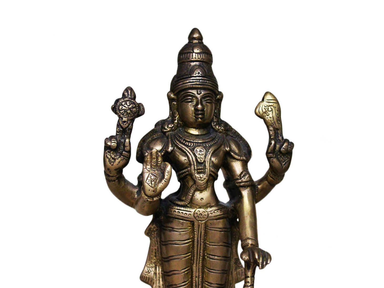 Brass Vishnu. Finely Done to Get That Peaceful Expression on the Face. Brings Instant Peace At a Moment Glance. Fills the Atmosphere with Peace and Positive Energy. Handmade. It is More Than a Statement Piece.