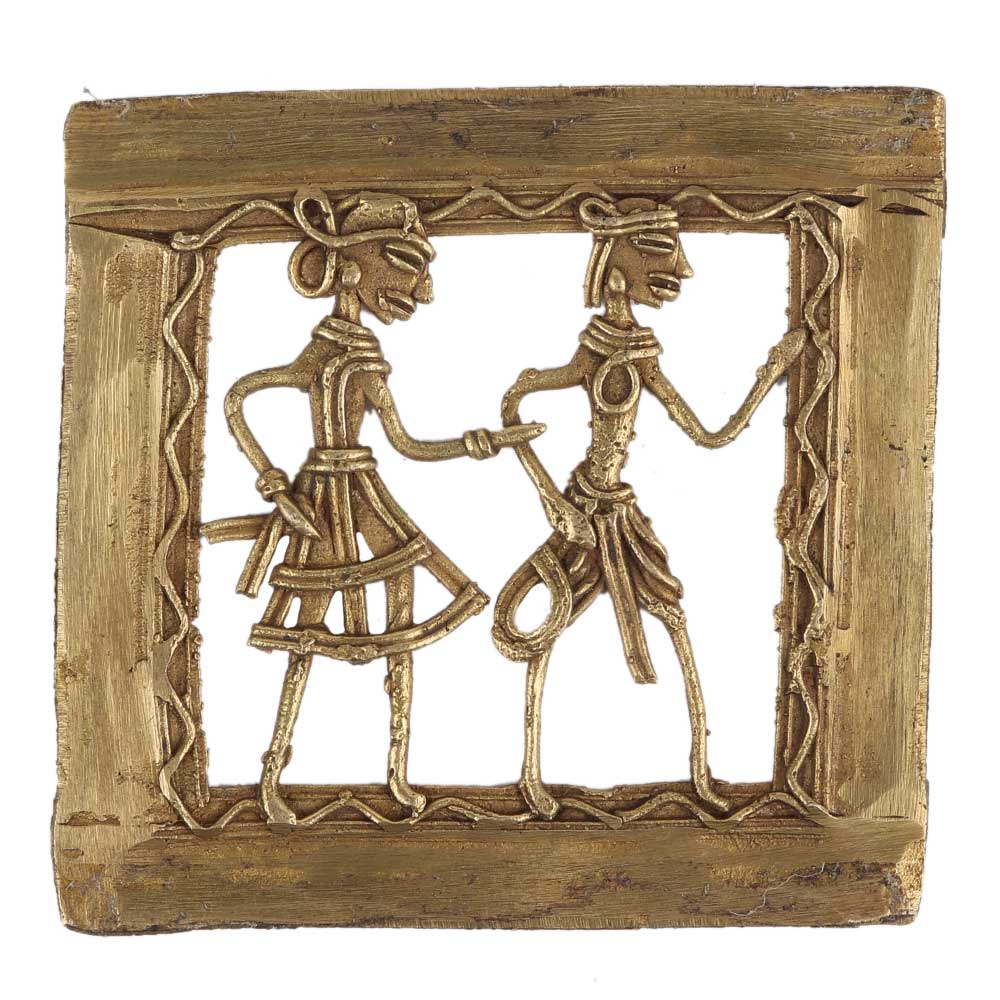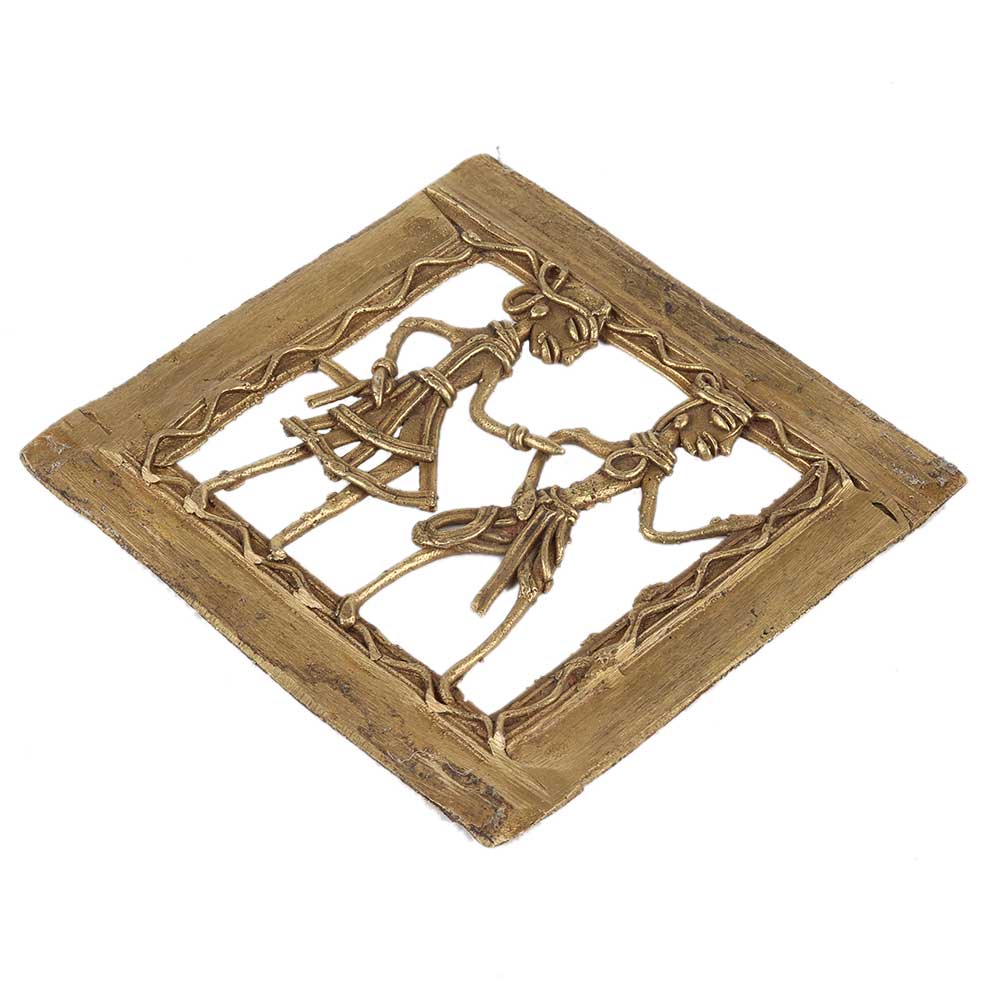 • Brass Wall Art Hanging Tribal Couple Daily Routine Dhokra Style