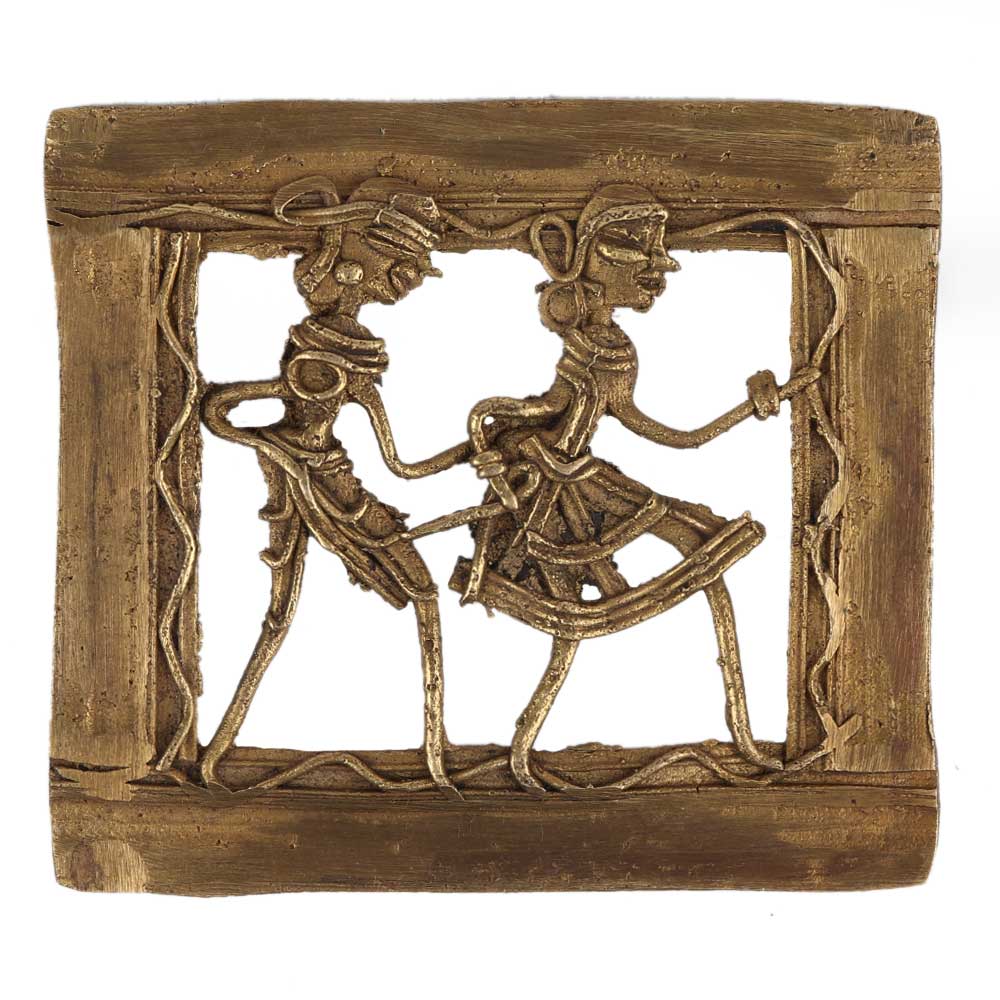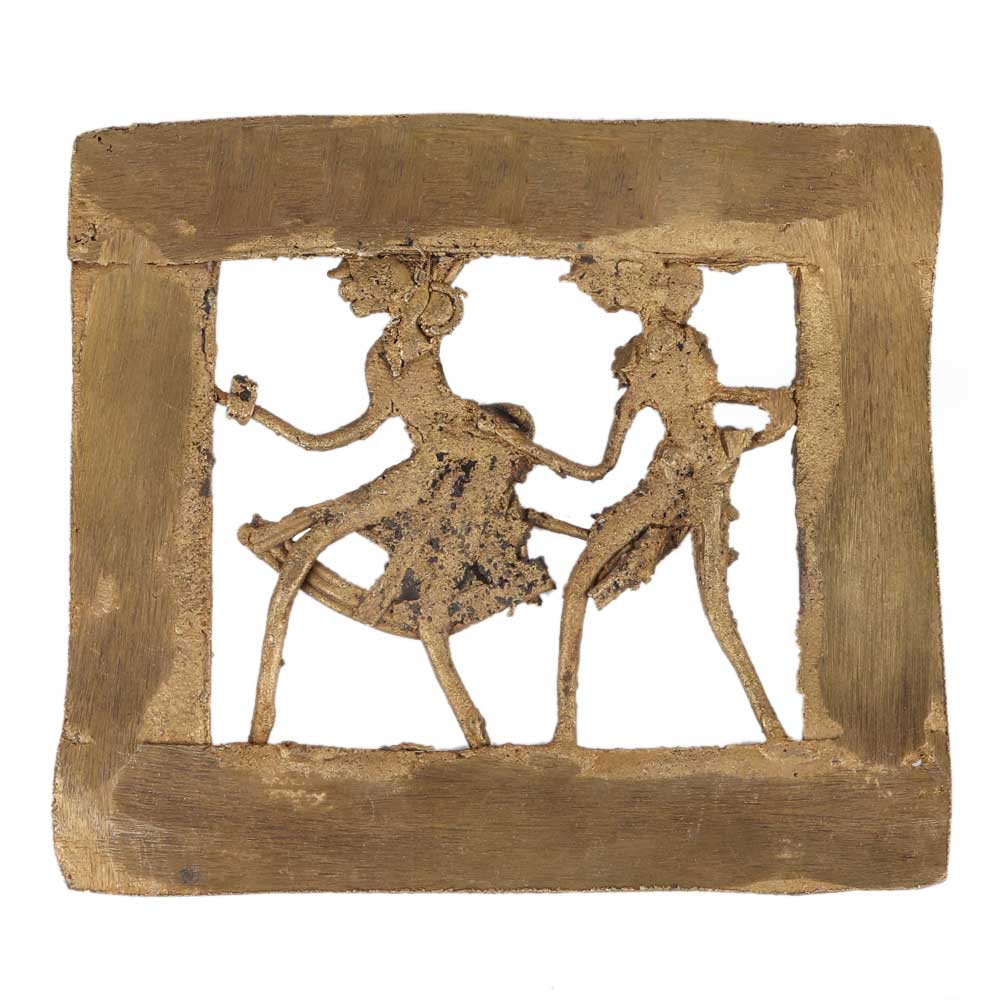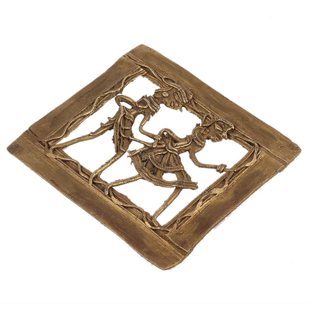 • Brass Wall Hanging Dhokra Tribal Couple Holding Hands In Square Frame