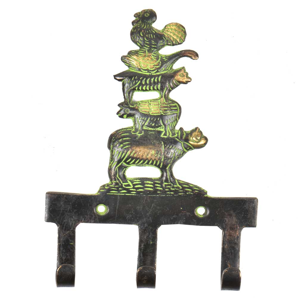 Bring playful character and practical organization to your walls with the Brass Wall Key Holder featuring Cow, Pig, Dog, Duck, and Rooster. This charming 3-hook key holder is hand-cast from durable solid brass and finished with a vintage-style patina. Each farm animal is sculpted in fine detail, offering a nostalgic nod to rural life while keeping your keys or accessories neatly stored. Whether for your kitchen, mudroom, or hallway, it’s a clever blend of artistry and utility.
