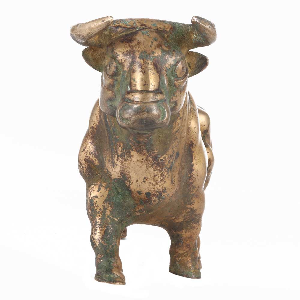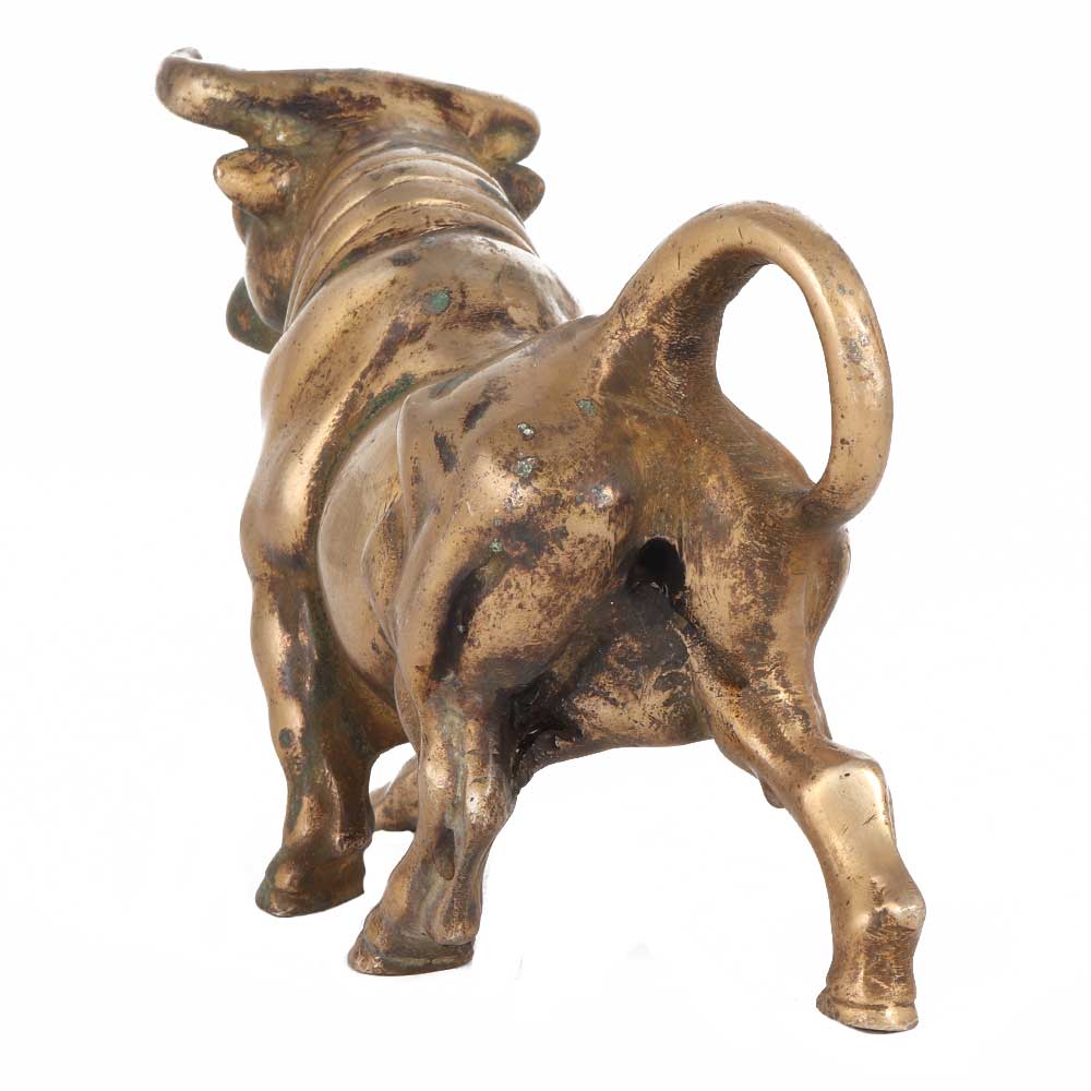 Bulls are known for their physical prowess, with stronger bones, bigger feet, a muscular neck, and a massive, bony skull with protecting wrinkles over the eyes. This realistic Bull is prepared to attack with its fierce horns in this pose. This brass Bull will add a splash of colour to any mantelpiece. Its allure is enhanced by the distinctive royal golden colour.