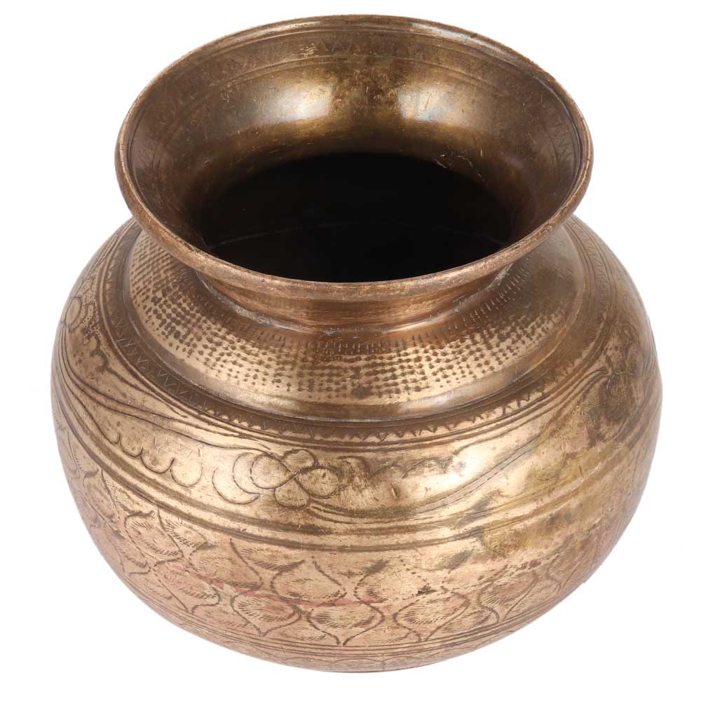 The traditional Indian practice of storing water in brass pots was meant for healthy lifestyle, and Indians drank water from brass pots until the early twentieth century, employing brass as a means of storing and drinking water. This is a mid-19th design that is currently utilised by urban people as an art deco object or vase and kept in a prime place in the house with fresh flowers.
