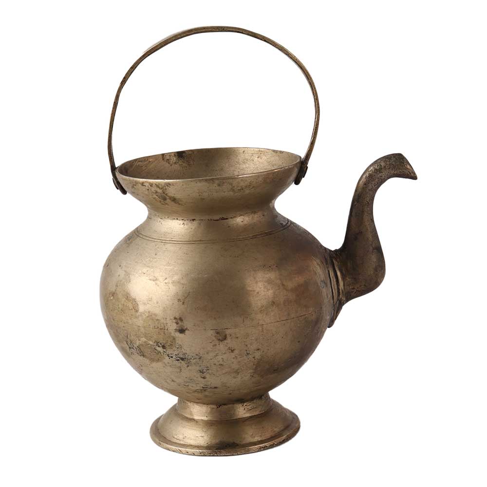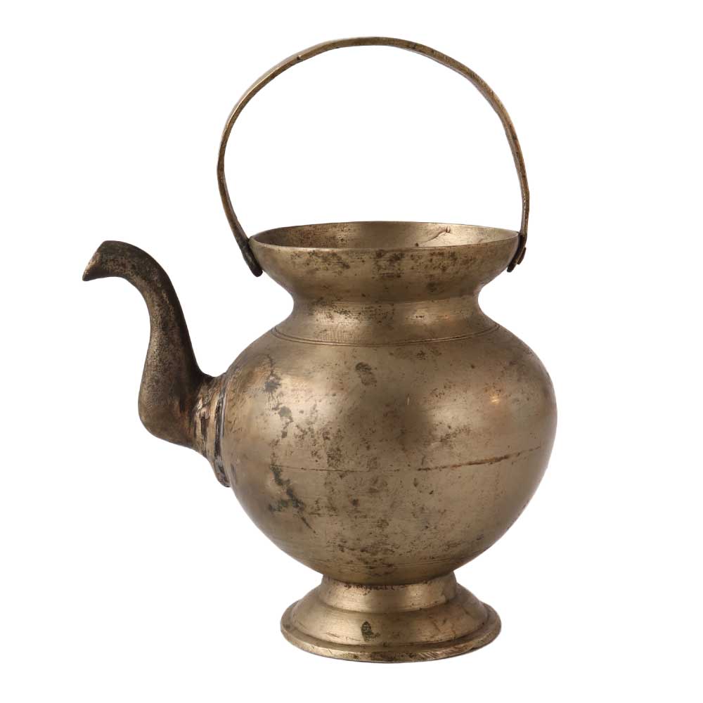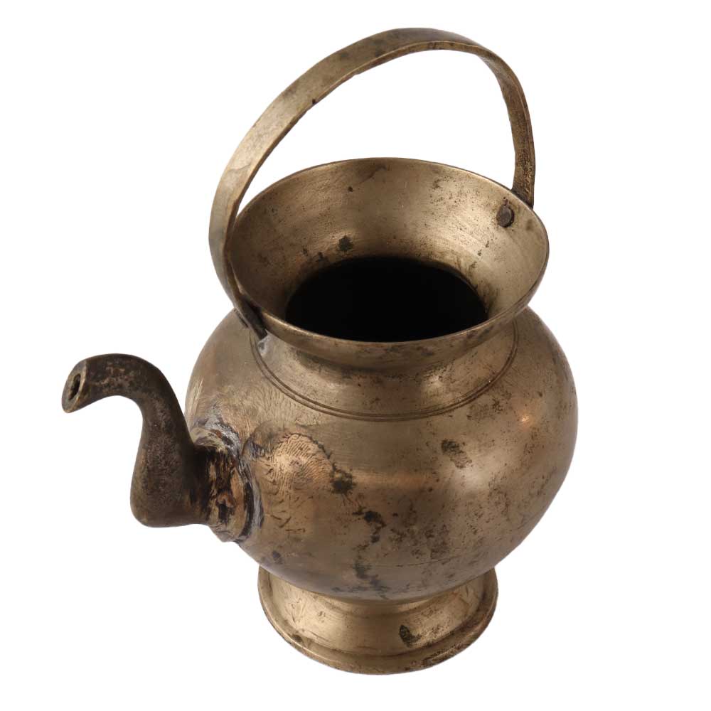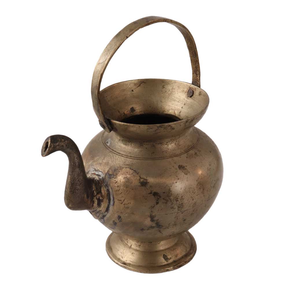 Brass Water Pot with Spout and Handle is a functional and decorative item that is used for storing and pouring water. The pot is typically made of brass, a durable and attractive metal that is resistant to corrosion and tarnishing. The pot is often decorated with intricate carvings and designs, such as images of Hindu gods and goddesses, or other auspicious symbols. The pot is often used during religious ceremonies and rituals, such as puja, and for personal devotion. It is also used for blessings, such as when a priest or family member pours the holy water over the idols or persons. The spout and handle on the pot make it easy to pour and handle the water. The water pot is also considered as a symbol of purity and sustenance in many cultures. Overall, a Brass Water Pot with Spout and Handle is a beautiful and functional addition to any household.