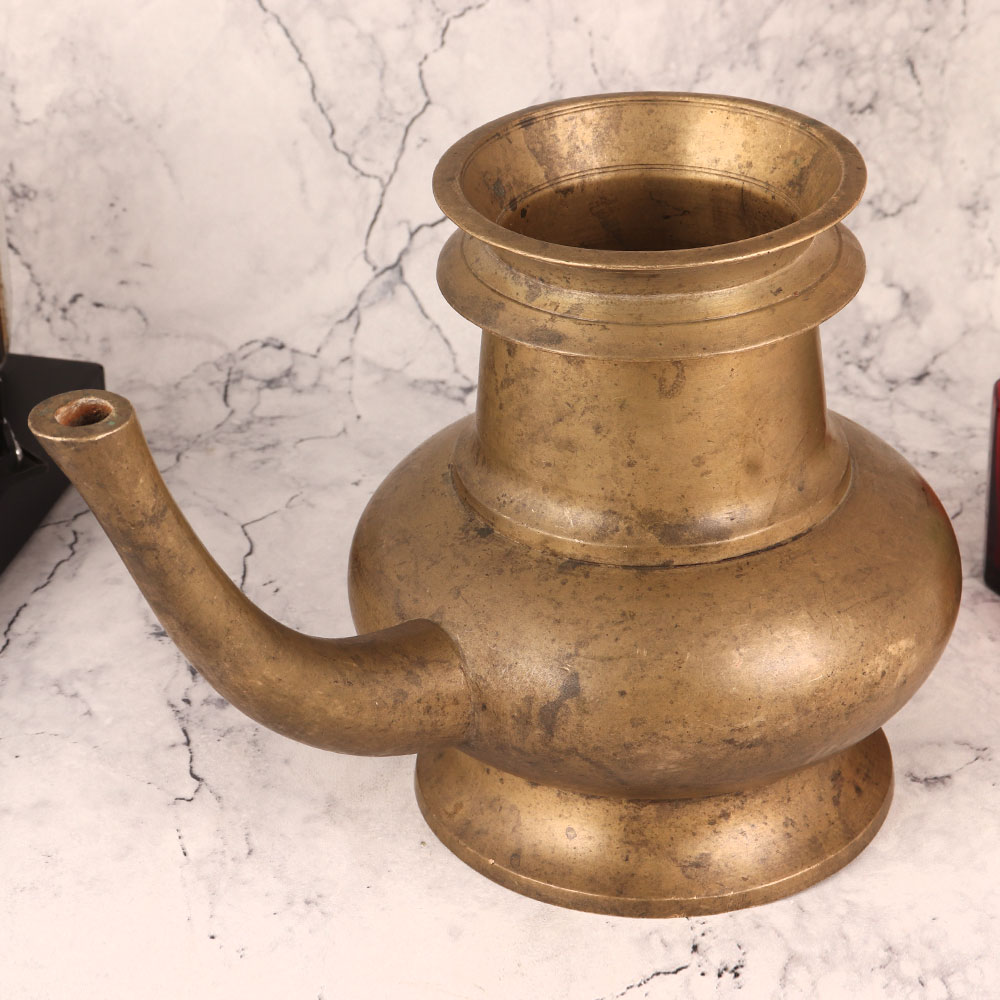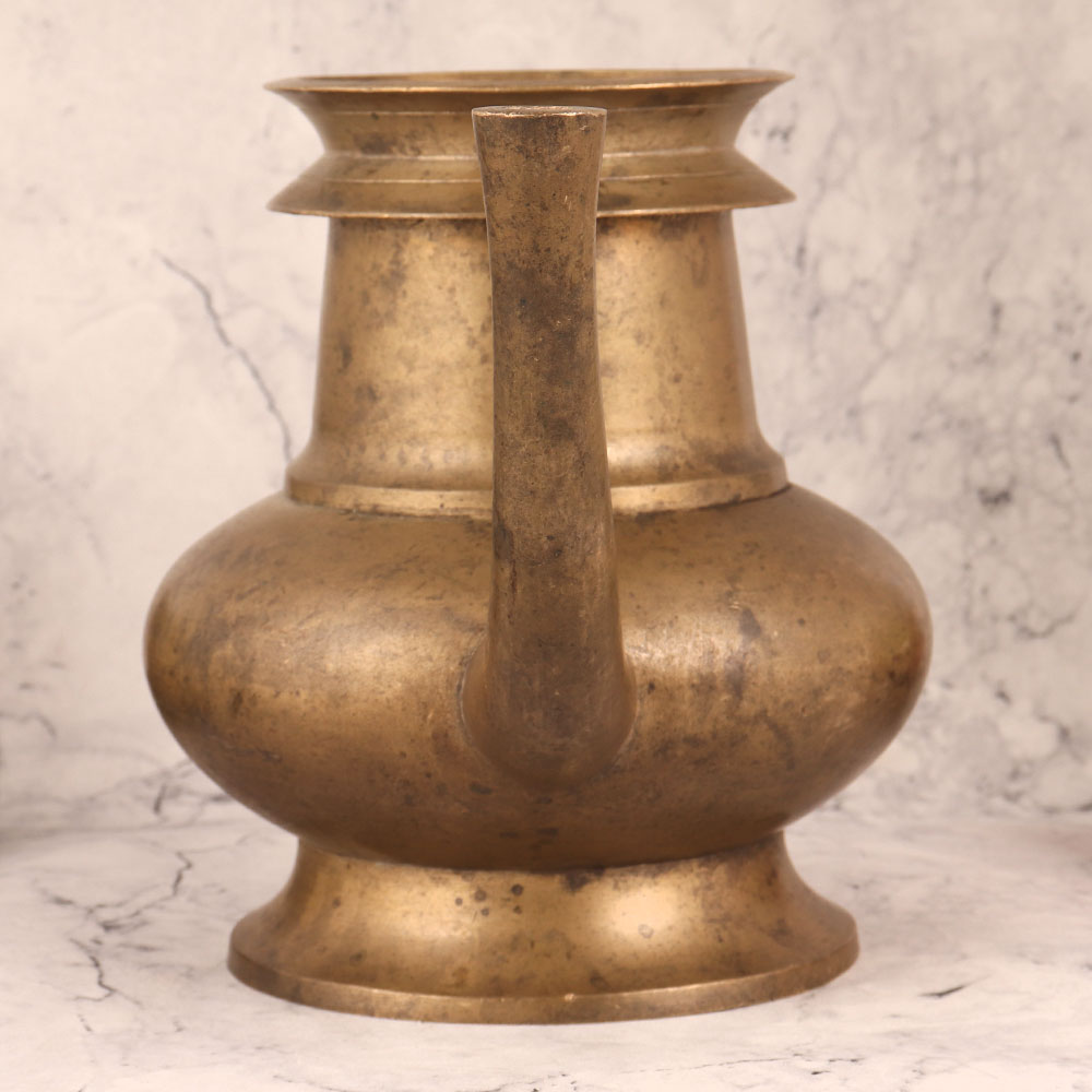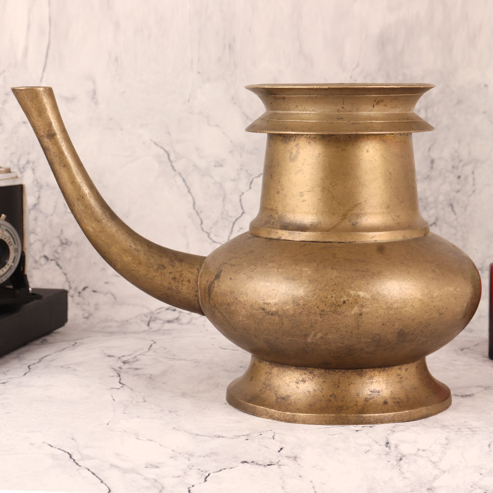 Enhance your home decor with this exquisite Brass Water Pot in an antique brown finish, meticulously handcrafted by highly skilled Indian artisans. Crafted from high-quality brass, this stunning piece seamlessly blends traditional craftsmanship with timeless design. This versatile water pot features a convenient spout, making it not only a captivating decorative item but also a practical addition to any setting. Place it with pride in your home, office, restaurant, hotel, cafe, or shop to infuse an aura of elegance. Embrace its spiritual significance as a holy water pot, perfect for temple rituals, Hindu ceremonies, and havans. Its presence enhances the sanctity of your religious practices. Alternatively, unleash your creativity by using it as a distinctive flower pot, infusing nature's beauty into your space. Collectors will cherish adding this piece to their vintage collection, appreciating its authentic craftsmanship and timeless appeal. Moreover, it makes for a thoughtful and cherished gift for your loved ones on special, festive, or auspicious occasions.