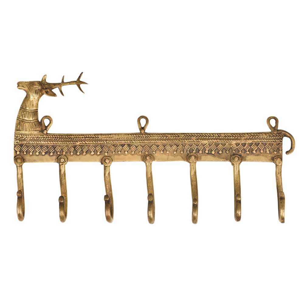 The Brass Wild Reindeer Brass Wall Seven Hook is a handcrafted fusion of natural inspiration and practical design. Featuring an intricately sculpted reindeer at the center and seven strong hooks arranged across a solid brass frame, this wall-mounted piece is both visually striking and highly functional. With its warm antique brass finish and wilderness motif, it captures the essence of rustic charm while offering ample storage for everyday items. This hook is designed to be a statement piece—bringing both organization and outdoor spirit into your home.