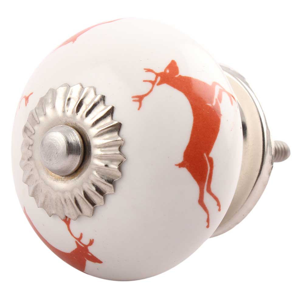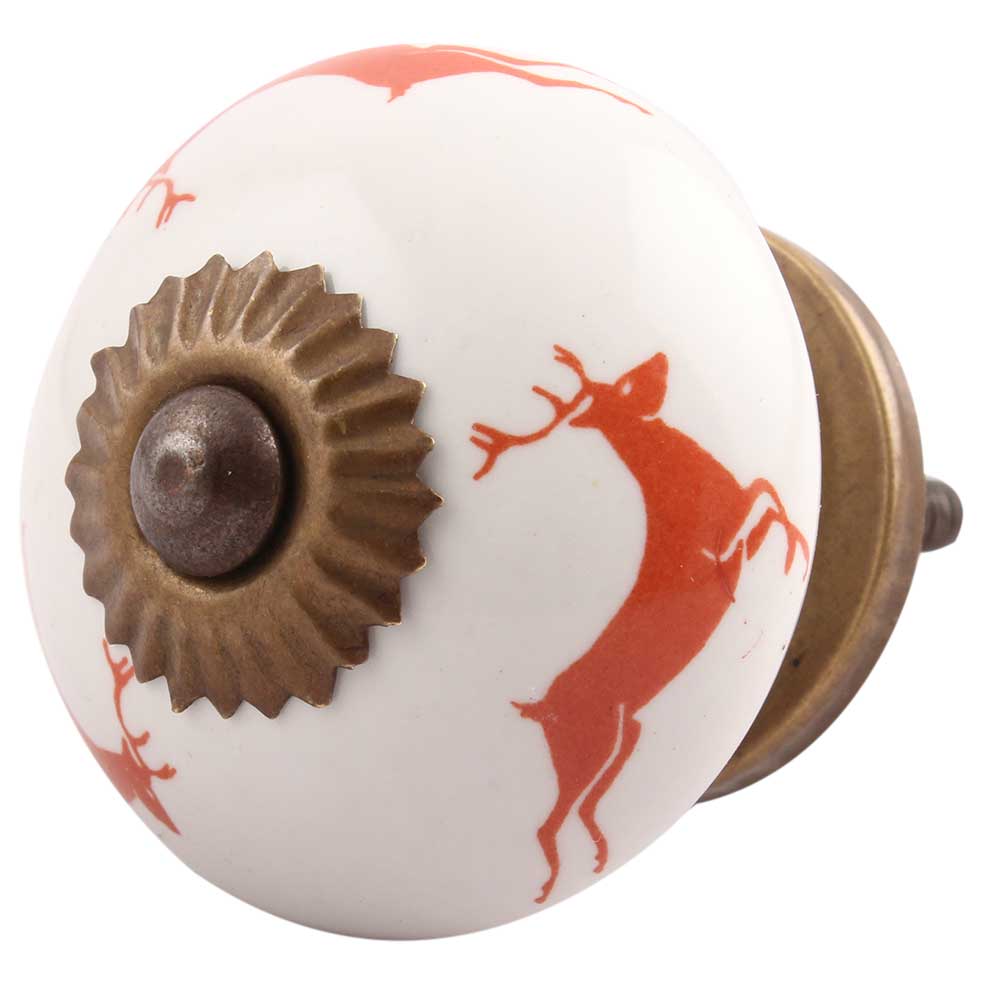 Brick Red Running Rein Deer Pattern Ceramic Drawer Knob