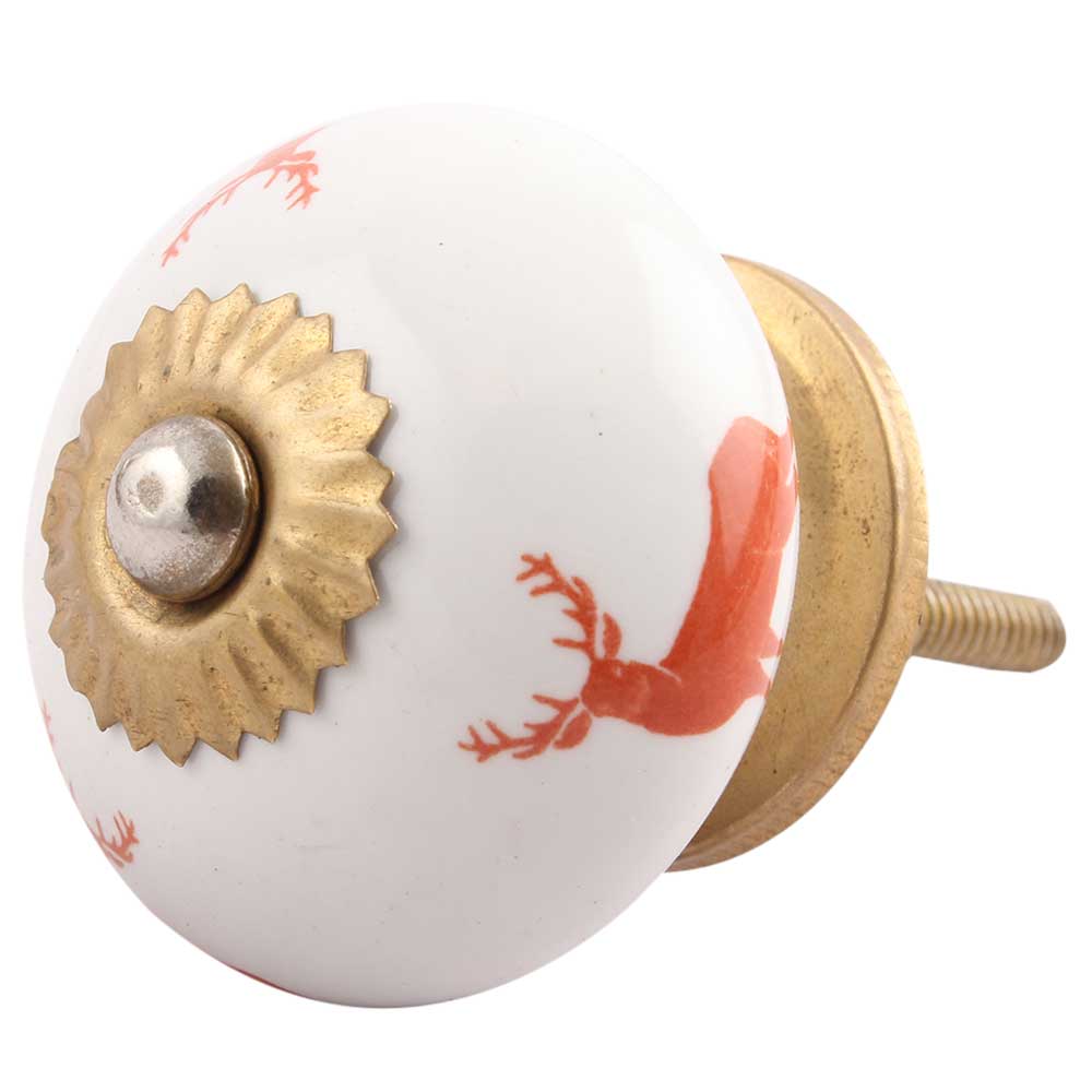 Brick Red Standing Rein Deer Pattern Ceramic Drawer Knob Online