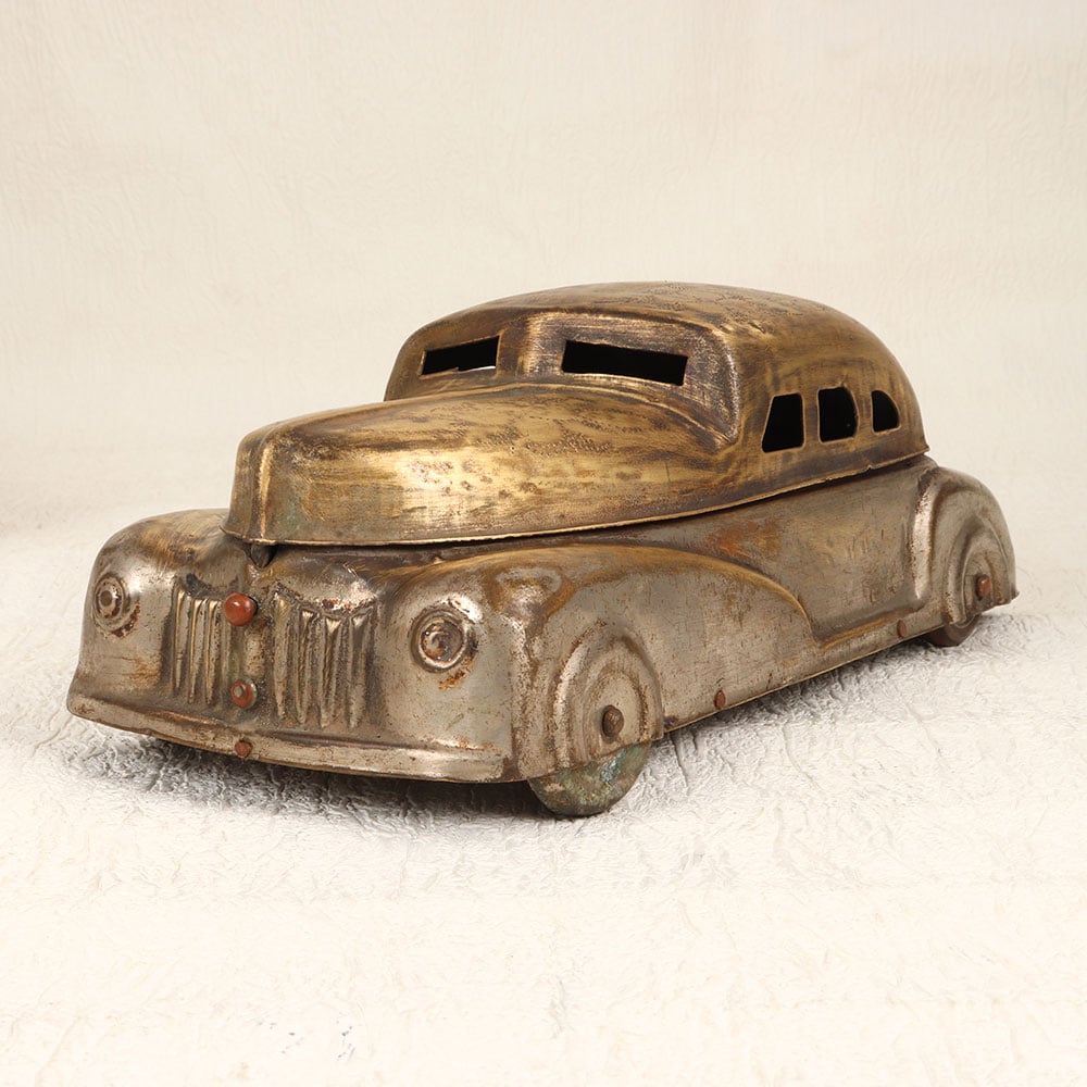 Buy a Vintage Brass Motor Car Box online which is a captivating fusion of artistry and functionality. Crafted by highly skilled and experienced artisans in British Art, this handmade masterpiece boasts a distinctive motor car shape, meticulously detailed to perfection. The antique brown finish adds a timeless allure, evoking the charm of a bygone era. Made from high-quality brass, this box is not just a storage solution but a statement piece for your home, office, restaurant, hotel, or cafe. Its versatility extends beyond practicality; it serves as a striking decorative element that effortlessly complements various settings. Whether placed on a dresser, desk, or display shelf, it exudes sophistication and nostalgia. This vintage brass box transcends its utilitarian purpose, making it an ideal addition to any collector's ensemble. Elevate your space with a touch of history and elegance, as this unique creation becomes a talking point among connoisseurs. Moreover, it makes for a thoughtful and cherished gift for your loved ones on special, festive, or auspicious occasions, adding a touch of class to their treasured possessions.