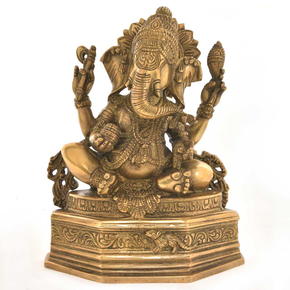 Bronze Ganesha is the Most Knowledgeable God. Lord Ganesha is the Son of God Shiva and Goddess Parvati. It is Said That Lord Ganesha Should Be Worshipped First. Ganesha is Considered as the Remover of Obstacles and Problems. The Figurine of Lord Ganesha has 4 Hands. One Hand Holding Axe, 2Nd Hand Holding Rope, 3Rd Hand Holding Modak and 4Th Hand Giving Blessings. The Feet of the Lord Ganesha Towards Your Body to Seek His Blessing. Mouse or Mushak on the Raised Platform Below Lord Ganesha'S Feet T Show He is Nothing in Front of Him.