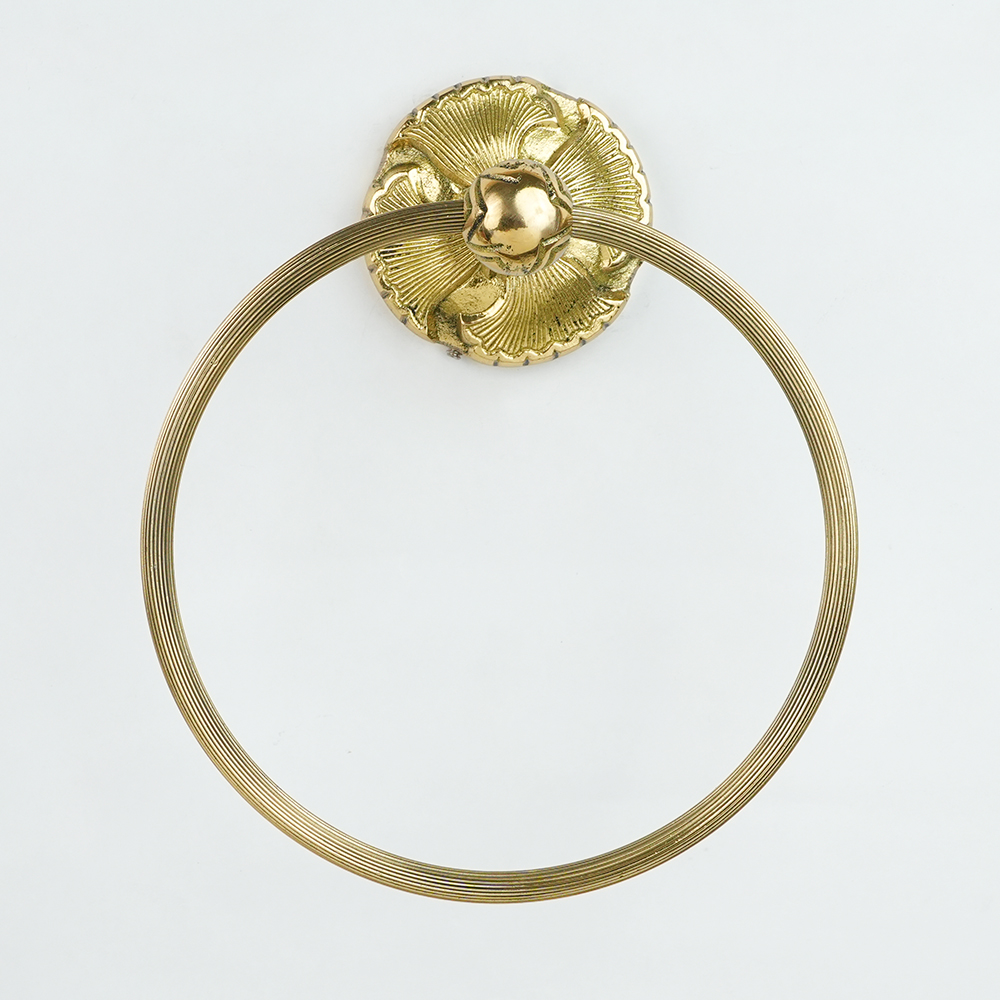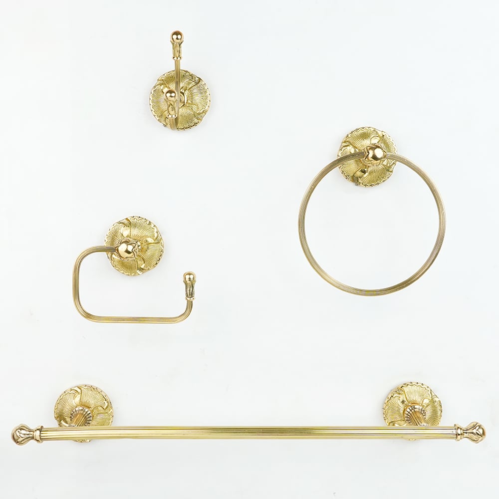 • Bronze Brass Floral Base Bathroom Hardware Accessories Set of 4