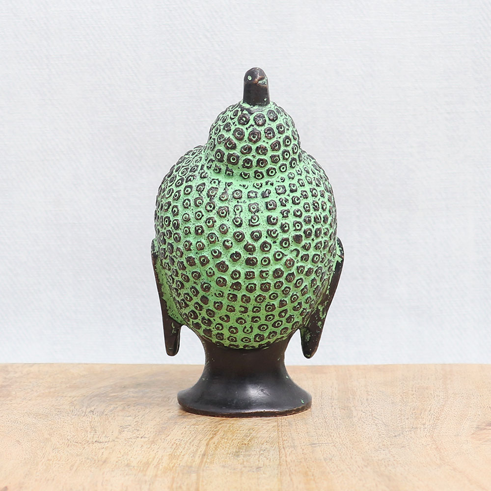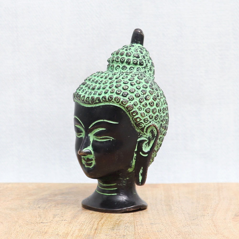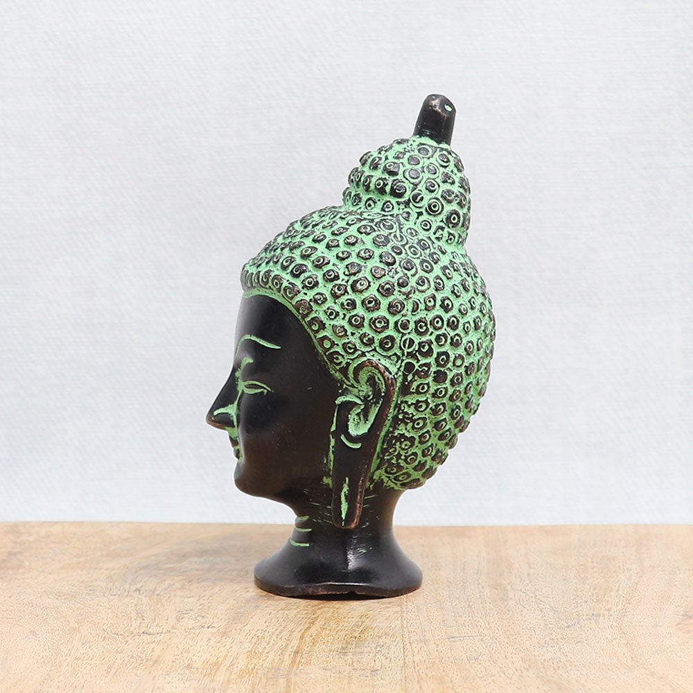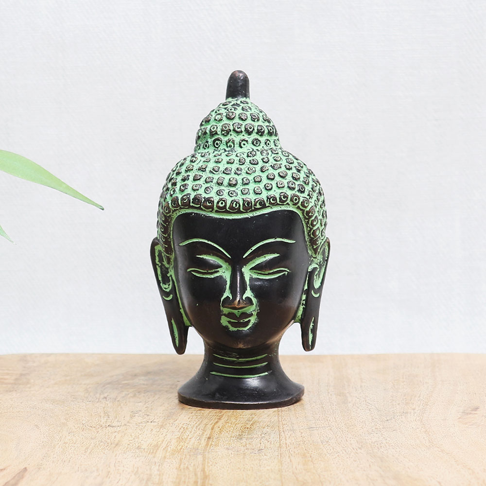Buy a bronze Buddha head statue online which is an epitome of timeless beauty and spirituality. Crafted with utmost care and devotion, this handmade masterpiece showcases the skill and artistry of talented artisans. Adorned with an antique green and black finish, this captivating statue radiates a sense of tranquillity and serenity. The bronze Buddha head statue holds great significance in various Buddhist temples, symbolizing wisdom, enlightenment, and inner peace. Its presence adds a touch of grace and elegance to any interior setting, making it a perfect choice for decorating your home, office, cafe, restaurant, gym, or hotel temple. You can now easily acquire this remarkable piece by purchasing the bronze Buddha head statue online. Whether you seek a divine addition to your personal worship space or a meaningful gift for your loved ones on special occasions, festive celebrations, or auspicious events, this statue is an auspicious choice.