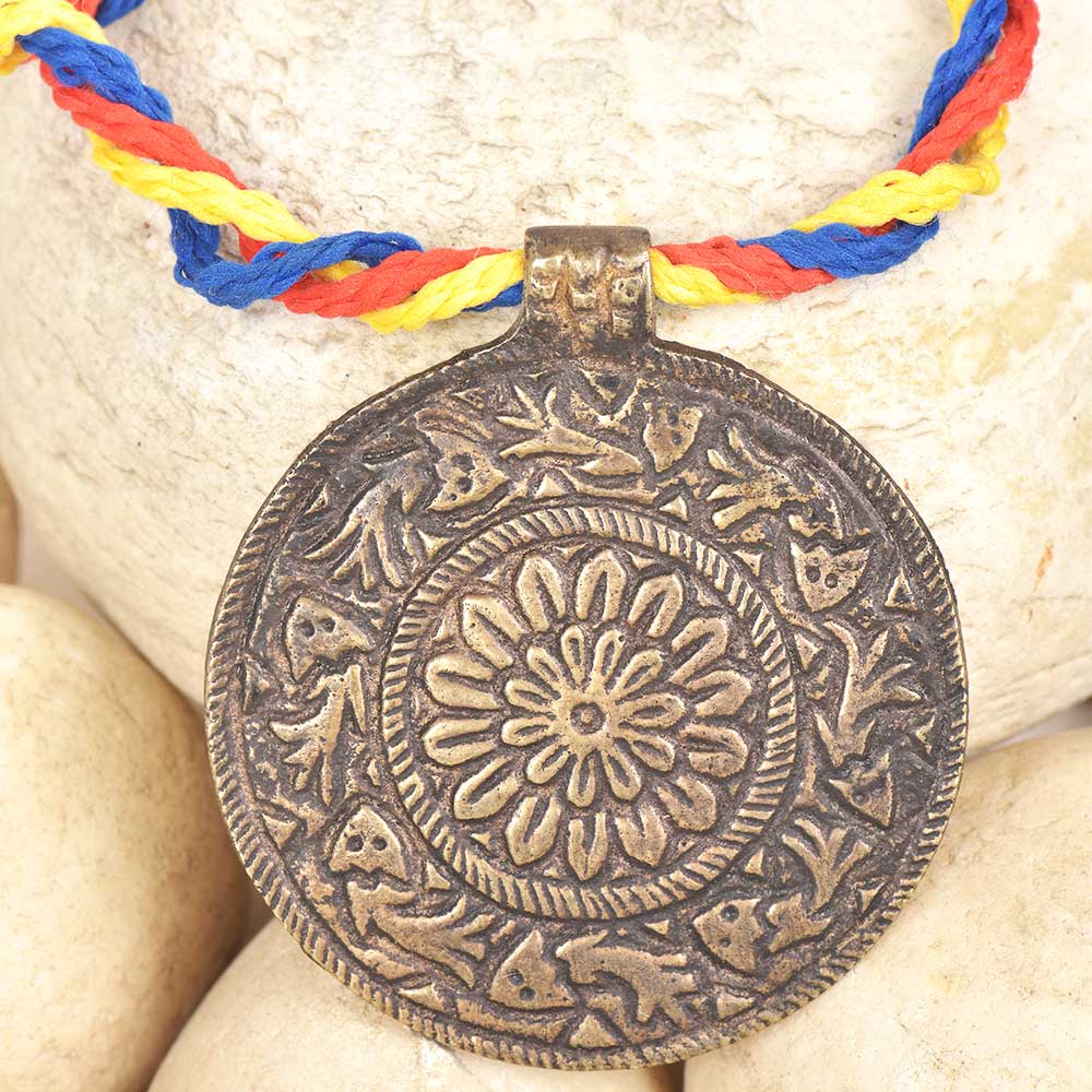 Embrace the beauty of handcrafted tradition with this Bronze Circle Pendant featuring an Etched Flower Design, a stunning fusion of artistry and symbolism. Made from solid brass and finished in warm bronze tones, this pendant showcases a delicately etched floral motif that symbolizes growth, harmony, and renewal. Its round form represents wholeness and balance, while the multicolor patina adds an earthy, artistic depth — making it a perfect accent for those who appreciate cultural and nature-inspired jewelry.