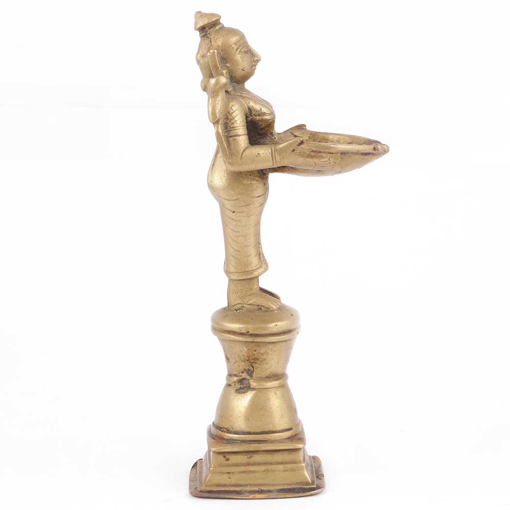 The Dancing Lady Oil Lamp is Made of Bronze, It is Handmade by the Skilled Craftsmen of India. This Dancing Lady is on a Raised Platform Holding a Diya in Her Hands. It Can Be Gifted to Someone, It can be Use as a Home Decor Product Orit Can Be Lightened During Any Auspicious Work.