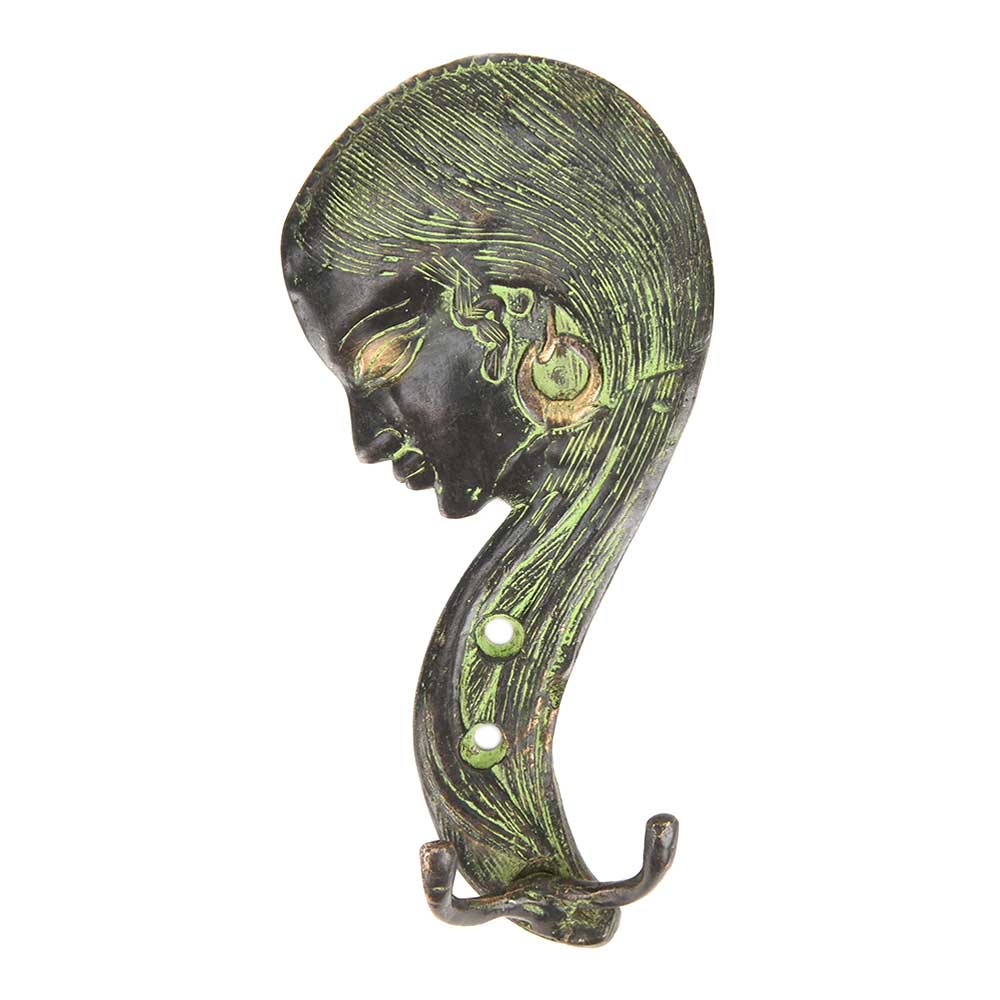 Bronze Face with Long Hair Hook with Patina.