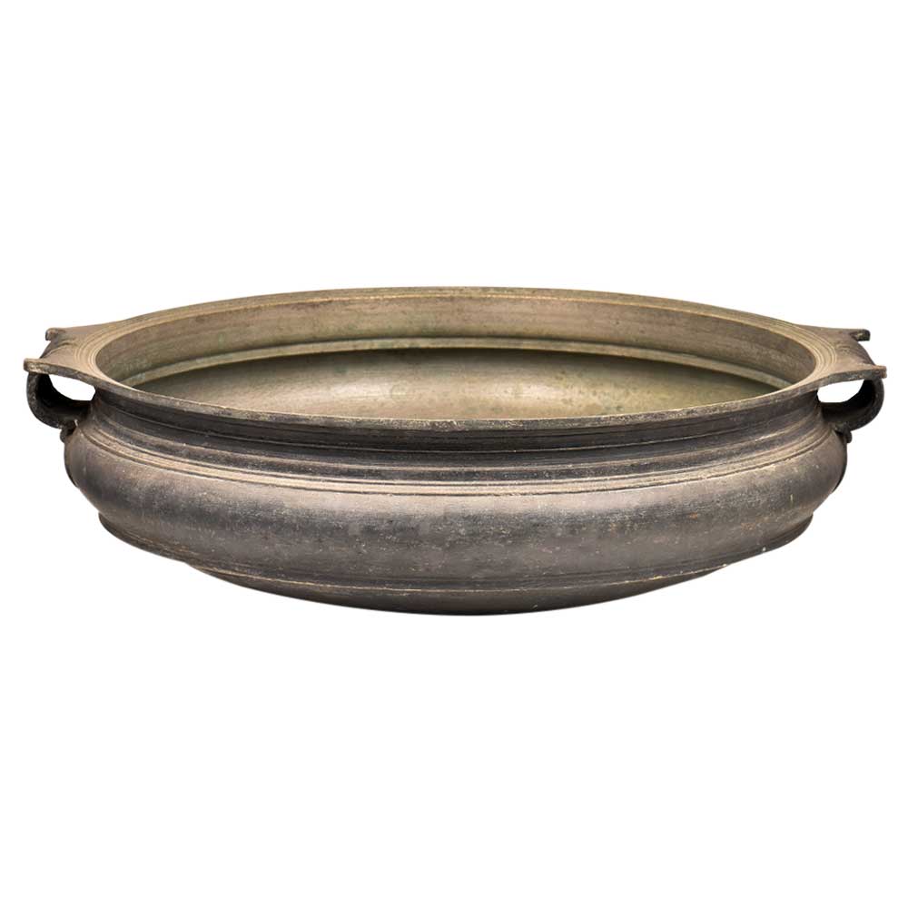 Bronze Hand Carved Urli Or Planter With 2 Decorative Handles