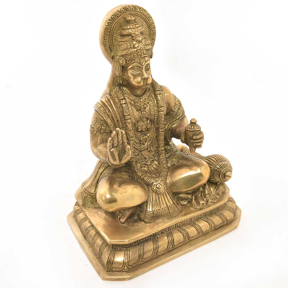 Brass Hanuman is in Sitting Position Worshipping Lord Ram. Hanuman is the God Who Keeps All Bads, Evils Away From You. The Hanuman Figurine is Handmade by the Skilled Artisans of India. Lord Ram Can Be Seen in Hanumans Chest. Hanuman'S One Hand is Giving Blessing Whereas in the Other Hand He is Holding Something. Lord Hanuman Helped Lord Ram (Avtara of Vishnu) to Find Sita Mata and Kill Ravana. There is Fine Detailing. There is a Round Pillow Kept Near Lord Hanuman.