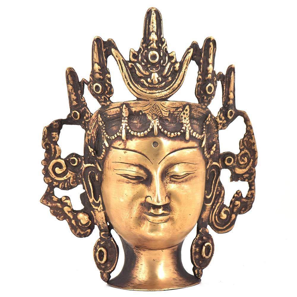 Lokeshwar head statue beautifully engraved and made by the skilled craftsmen of India. This lokeshwar head is made of bronze and is handmade, the crown is very finely carved and looks excellent. This statement is so eye satisfying and beautiful that it can be used for gifting, home decoration, worshiping etc.