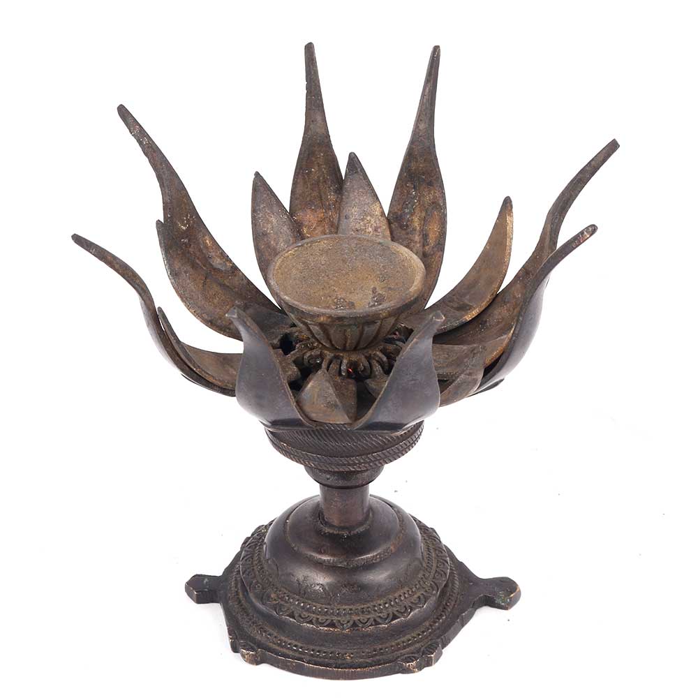 This Beautiful Bronze Lotus Oil Lamp will Open Its Petal While Rotating the Lower Part of the Oil Lamp. This Lotus Lamp is Made by the Skilled Craftsmen of India.