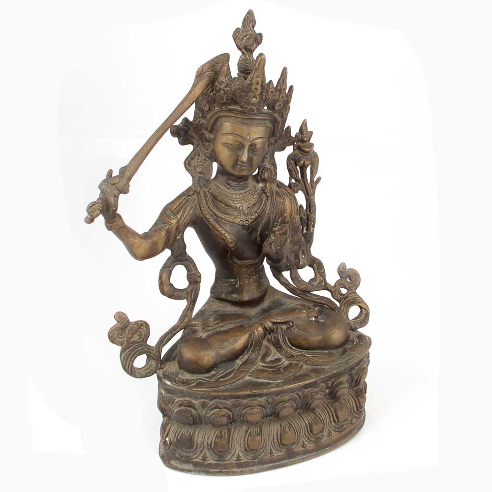 Manjushri is the Bodhisattva of keen awareness.  A disciple of the historical Buddha Shakyamuni, he represents wisdom, intelligence and realization, and is one of the most popular Bodhisattvas following Avalokitesvara.