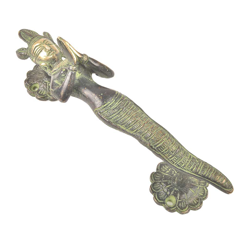 Indianshelf.com for bulk/wholesale orders.Indianshelf.us for personal purchases.This stunning "Bronze Naga Kanya Art Door Handle" is a harmonious blend of ancient symbolism and modern artistry. Meticulously crafted from high-quality bronze, the handle showcases a mesmerizing design inspired by the mythological Naga Kanya, or "Serpent Maiden," who is revered in several cultures for her strength, beauty, and spiritual significance.