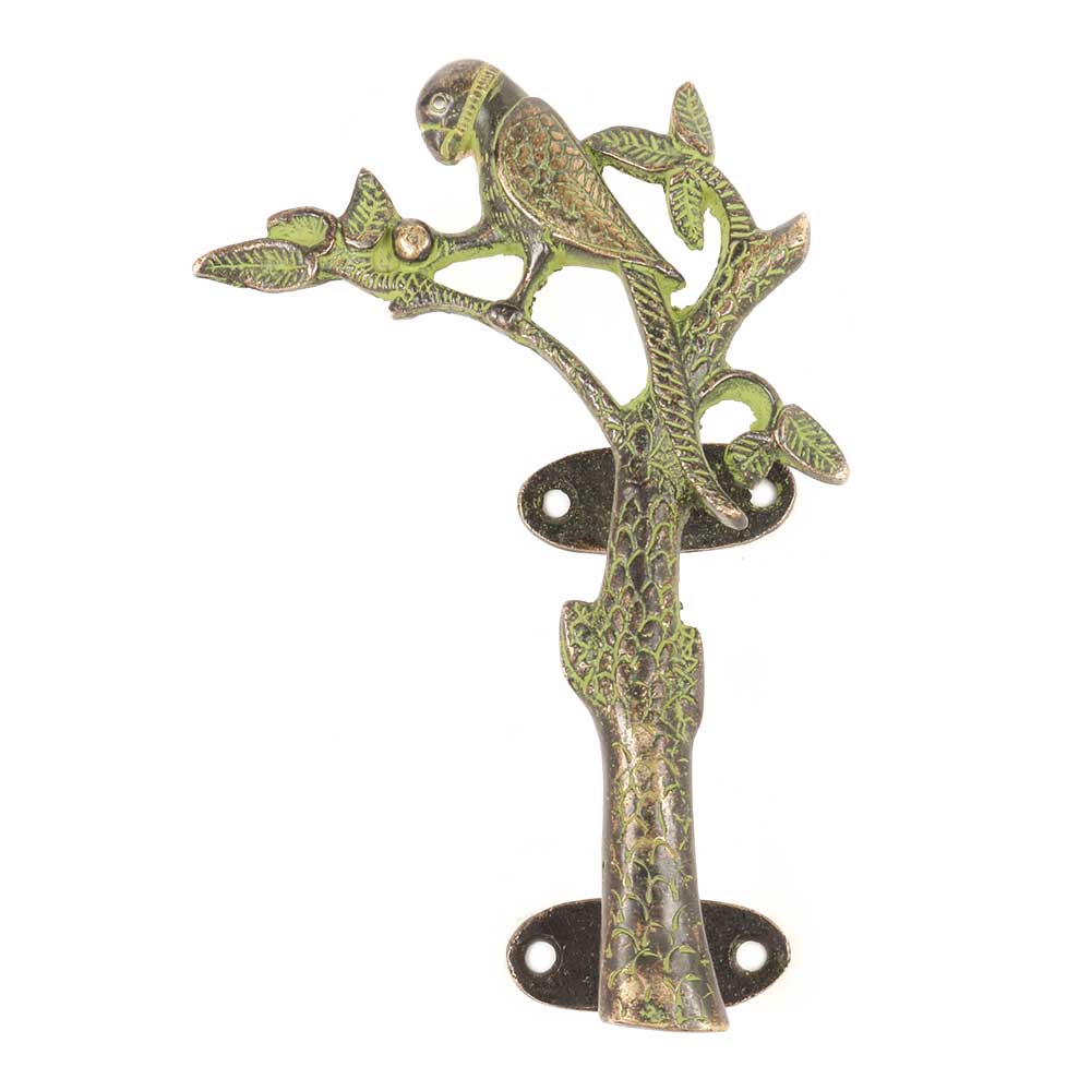 Hand Casted in Solid Brass, this Pair of Vintage Green Brass Parrot on Tree Door Handles are Simply Gorgeous Made by Indian Artisans from West Bengal, these Door Handles will Adorn Any Door and is a Conversation Starter. Ideal for Drawer, Dresser, Cabinet, Wardrobe, Cupboard and Almirah.