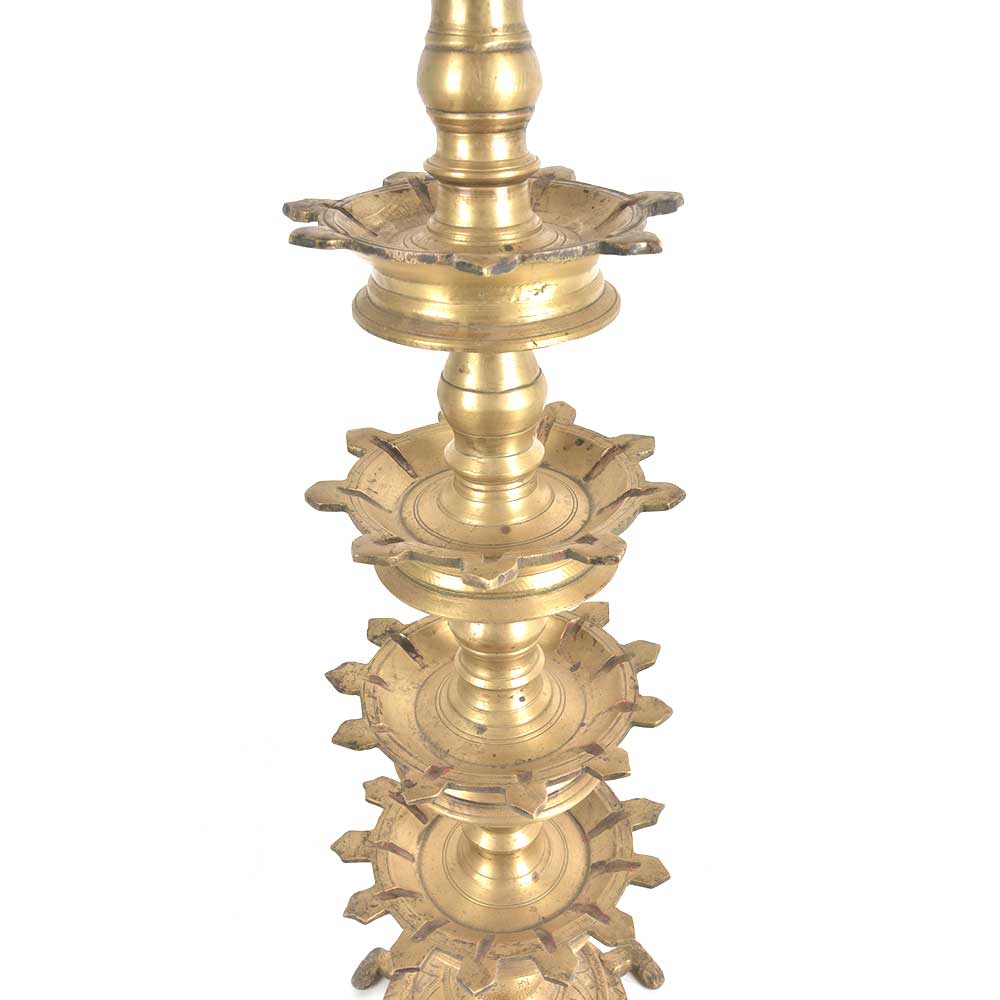 The South Indian Oil Lamp is Handmade by the Skilled Craftsmen of India. This Oil Lamp is Made of Bronze. This Oil Lamp has a Beautiful Peacock on Top of the Oil Lamp and a Turtle Beautifully Made At the Base. The Oil Lamp has 5 Layering. Mustard Oil, Ghee and Different Types of Oil can be Use to Enlighten This Lamp.