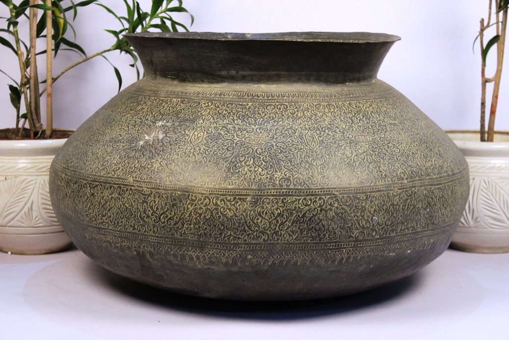 Bronze planter. It is hand made by skilled Indian craftsmen.
