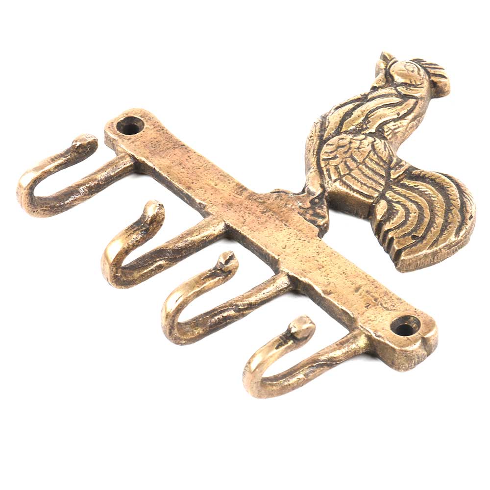 Indianshelf.com for bulk/wholesale orders.Indianshelf.us for personal purchases.Bring a rustic charm to your space with this Brass Rooster Wall Hook. Designed to offer both style and utility, this beautifully crafted rooster figure is paired with four sturdy hooks, ideal for hanging coats, keys, bags, and more. Its antique brass finish and intricate detailing make it a standout piece in any entryway, kitchen, or living room.
