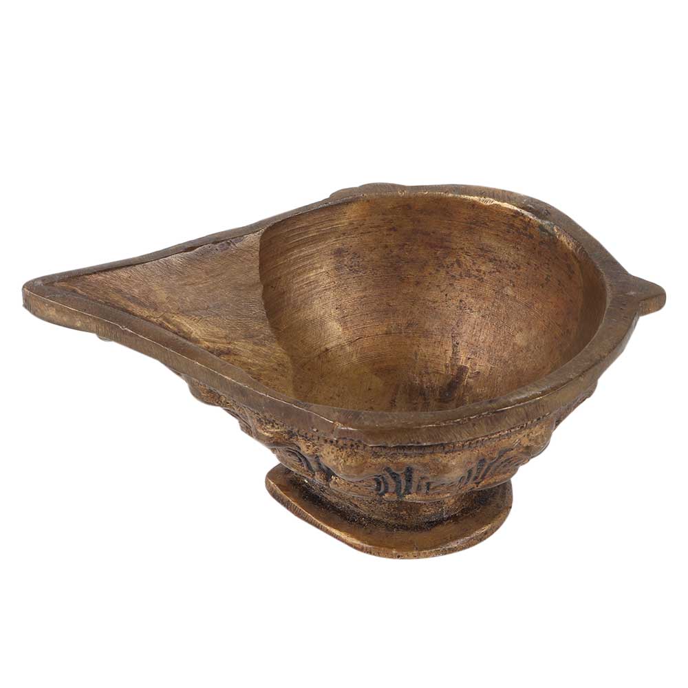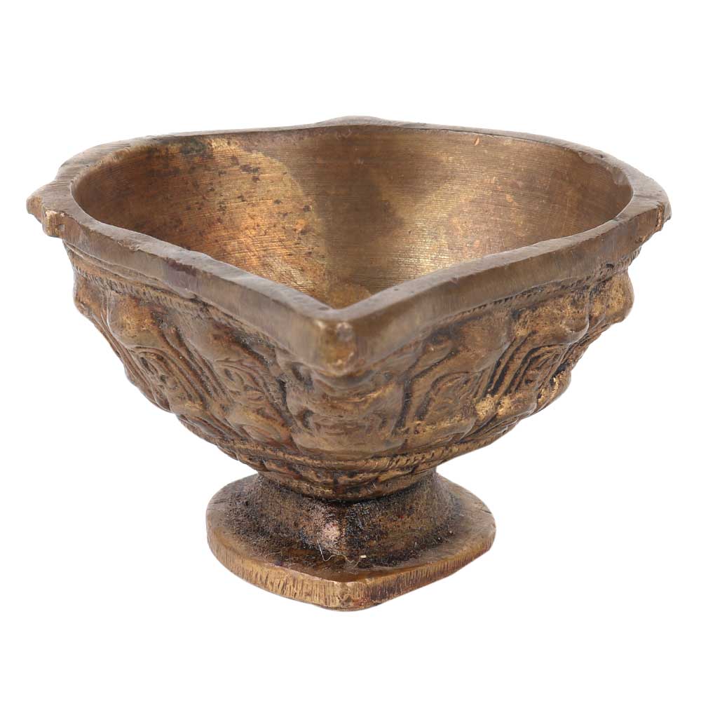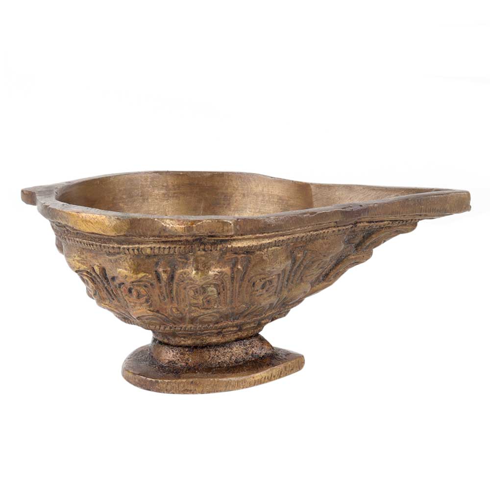 Finely hand carved spiritual worship Brass Oil Lamp. It is Made by Lost Wax Process. Adds Spiritual Flavor to Your Decor. Vegetable Oil, Mustard Oil or Desi Ghee can be Use to Light the Lamp with Cotton Wicks.