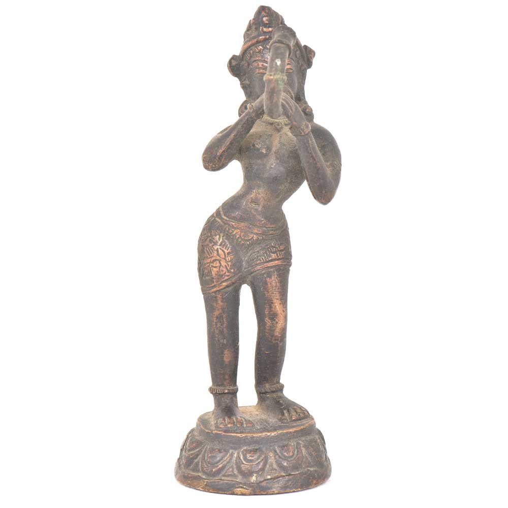 Bronze Tribal Lady Playing Tribal Trumpet