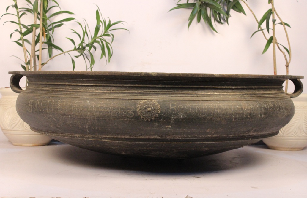 South Indian Bronze Urli Made by Lost Wax Process. One of Its Kind. It Was Used Before in India to Cook Food to Serve Gods and Deities. Now It is Ideal to Put Flowers and Floating Candles and Use It as a Perfect Indoor Decoration. The Beauty of This Piece Lies in the Way of Making This Piece. This Urli is Made by Lost Wax Process. Which is Completely Done by Hand. It Serves as a Beautiful Bronze Bird Bath Too.