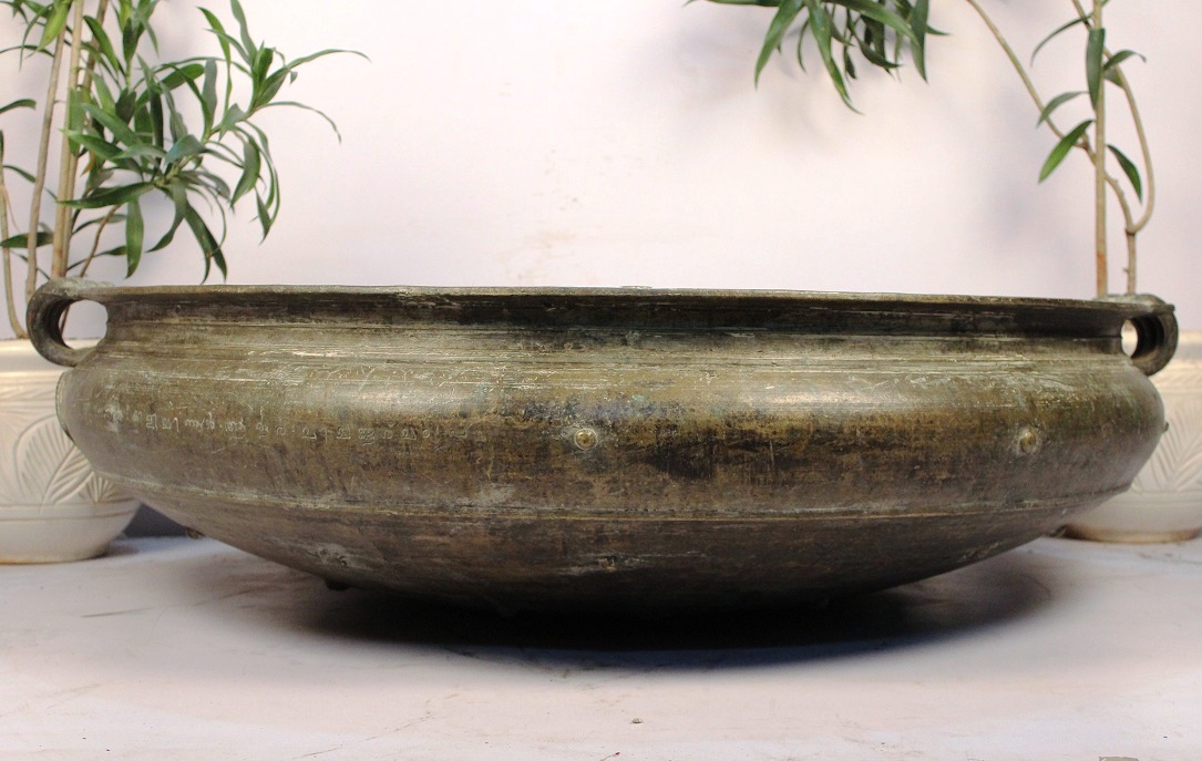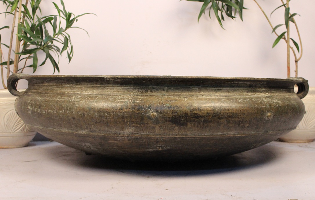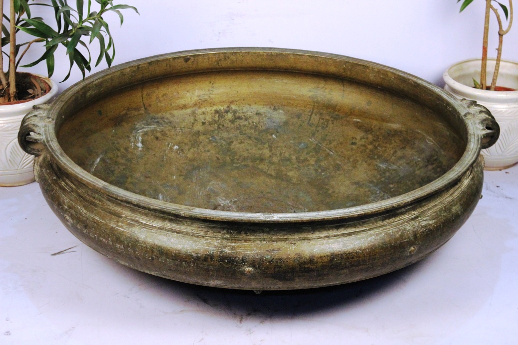South Indian Bronze Urli Made by Lost Wax Process. One of Its Kind. It Was Used Before in India to Cook Food to Serve Gods and Deities. Now It is Ideal to Put Flowers and Floating Candles and Use It as a Perfect Indoor Decoration. The Beauty of This Piece Lies in the Way of Making This Piece. This Urli is Made by Lost Wax Process. Which is Completely Done by Hand. It Serves as a Beautiful Bronze Bird Bath Too.