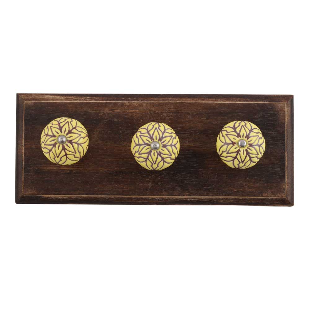 Brown Amarylis Floral Etched Ceramic Wooden Hook. A Perfect Complement to the Soft Tone of the Wood are these White Traditional Hat & Coat Hook Made of Genuine Porcelain and Brass. It can be use to Hang Jewellery, Leashes, Towels, Scarves, Light Weight Sweaters, Caps Etc.