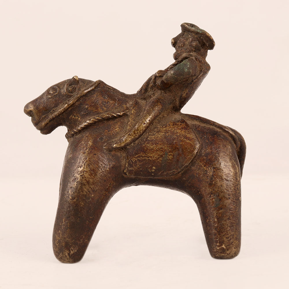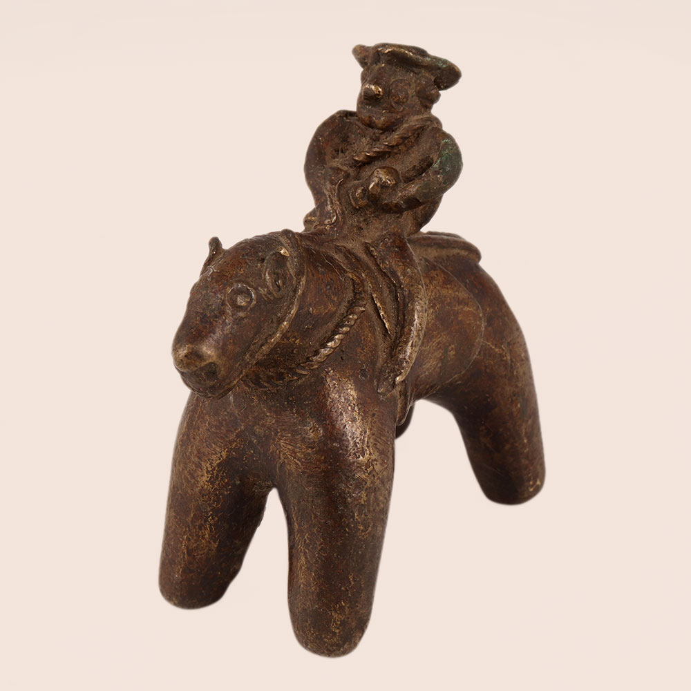 Elegance and craftsmanship converge in this exquisite vintage brass statue of a horse with a rider, lovingly handcrafted by highly skilled and experienced Indian artisans. This stunning piece boasts an antique brown finish that lends an aura of timeless charm and sophistication to any space it graces. Steeped in the rich tradition of Folk Art, this statue captures the essence of India's artistic heritage, making it a versatile addition to a variety of settings. Whether you want to enhance the ambiance of your home, office, restaurant, hotel, cafe, or shop, this statue is a perfect choice for adding a touch of cultural grace and historical allure. Collectors with an affinity for vintage treasures will find this piece a coveted addition to their collection, as its meticulous design and craftsmanship showcase the true artistry of its creators. Moreover, this statue serves as an ideal gift for your loved ones on special, festive, or auspicious occasions, symbolizing not only your appreciation for art but also your thoughtfulness in selecting a truly unique and meaningful present.