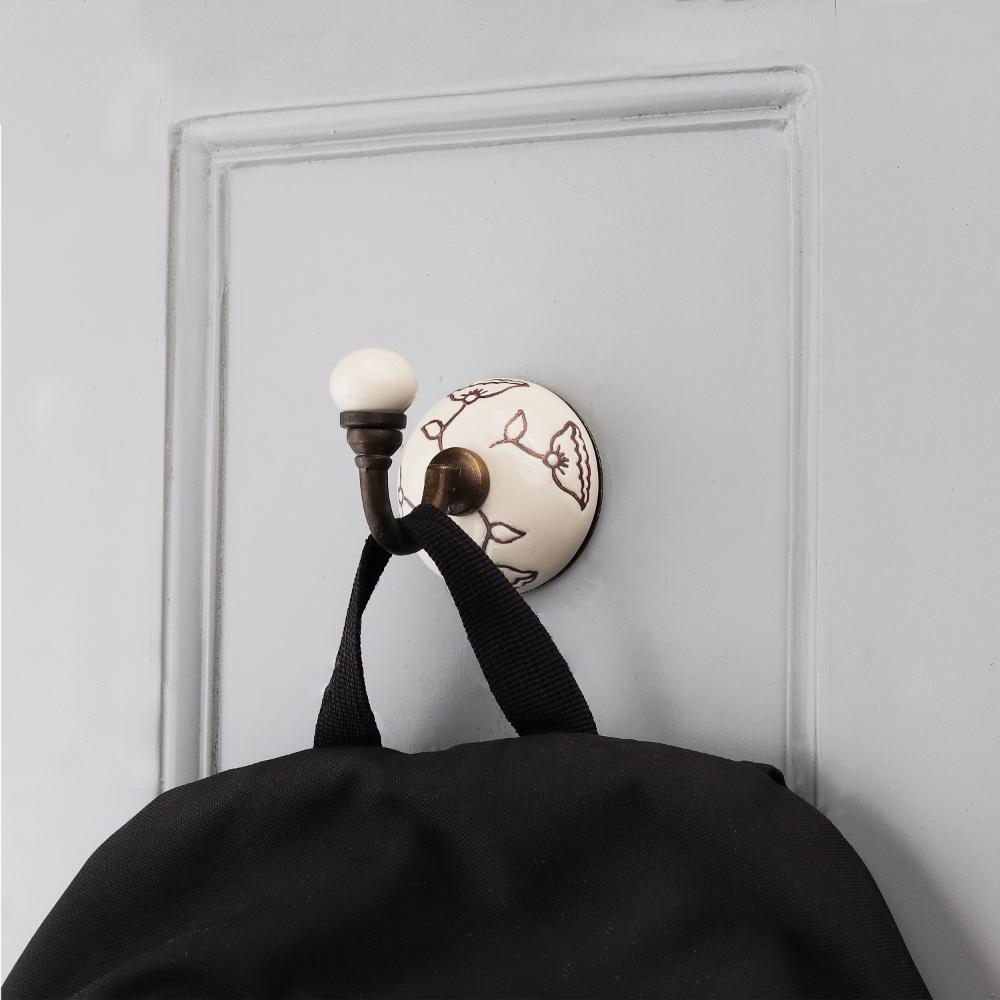 Brown Calla Lily Brown Etched Ceramic Wall Hook. When Put on Wall or Cabinet It is An Art in Itself. This Hook is Strong Enough to Hold Your Cloths, Keys, Tea Cups, Coffee Mugs, Hand Towels etc.