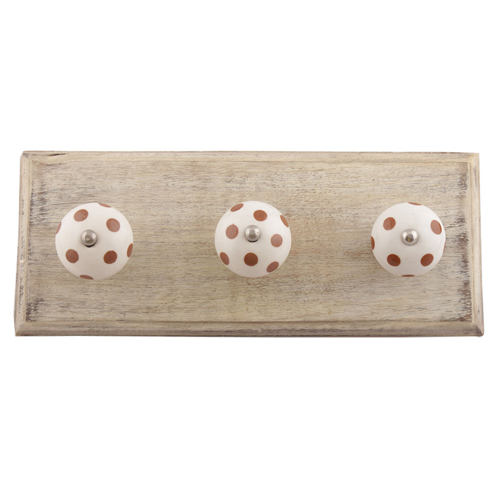 Brown Dotted Ceramic Floral Wooden Hooks. A Perfect Complement to the Soft Tone of the Wood are these White Traditional Hat and Coat Hook Made of Genuine Porcelain and Brass. It can be used to Hang Jewelry, Leashes, Towels, Scarves, Light Weight Sweaters, Caps etc.