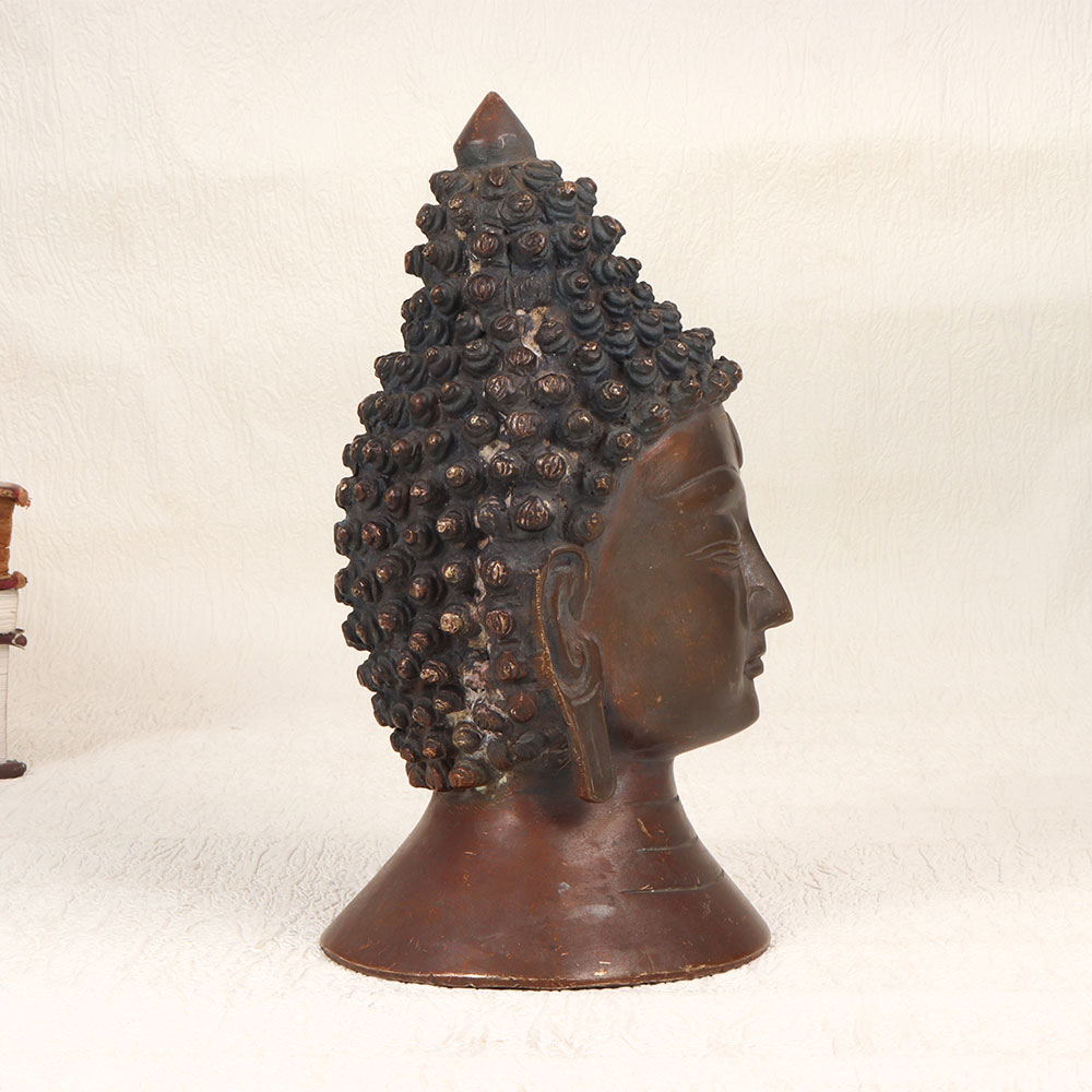 Immerse your space in the serenity of spiritual aesthetics with our exquisite Vintage Brass Lord Buddha Head Statue. Meticulously crafted by highly skilled artisans in the timeless tradition of Nepalese Art, this masterpiece exudes a sense of tranquillity and cultural richness. The statue boasts a distinguished antique brown finish, accentuating the fine details and intricate craftsmanship. Handmade from high-quality brass, the statue not only serves as a divine centerpiece but also as a testament to the artisanal mastery embedded in Nepalese heritage. Its versatility allows it to seamlessly integrate into various settings, be it your home, office, restaurant, hotel, or cafe, creating an ambiance of peace and enlightenment. Ideal for prayer rooms, the statue serves as a focal point for introspection and meditation. Embrace the allure of vintage charm by adding this unique piece to your collection, symbolizing timeless spirituality and artistic finesse. The statue serves as a thoughtful and meaningful gift for your loved ones on special, festive, or auspicious occasions, imparting blessings and positive energy to their lives.